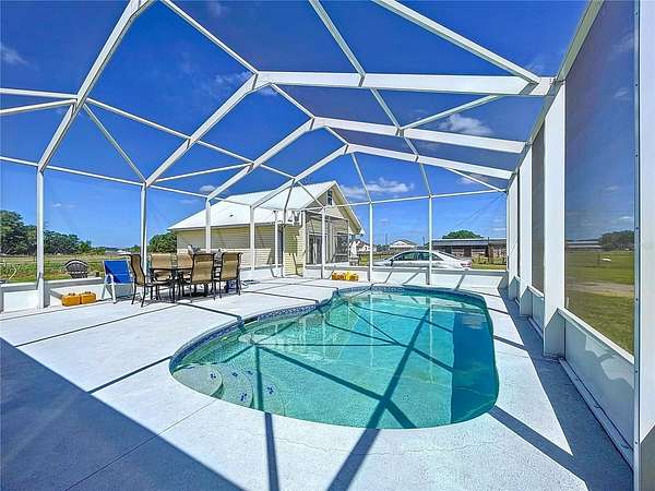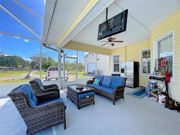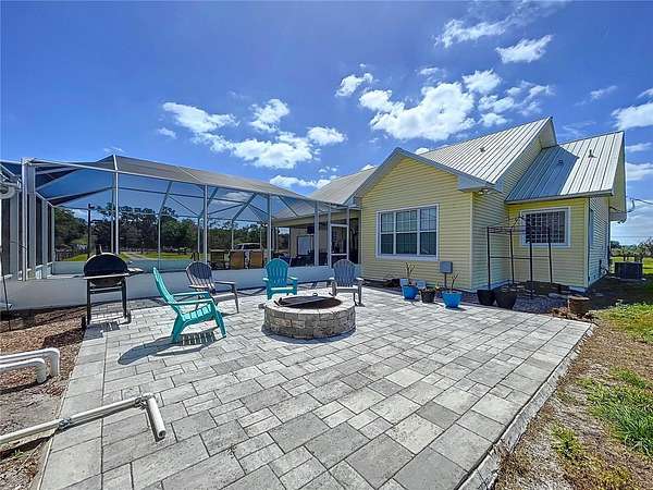 Enjoy the lanai-enclosed, heated, salt inground pool installed in 2023, perfect for year-round relaxation. The property features a newly constructed oversized metal RV garage and workshop with electric, completed in 2022, providing additional parking or workspace options.