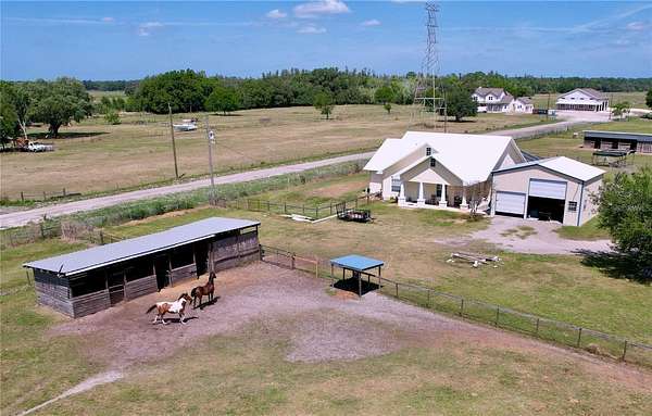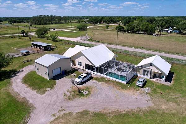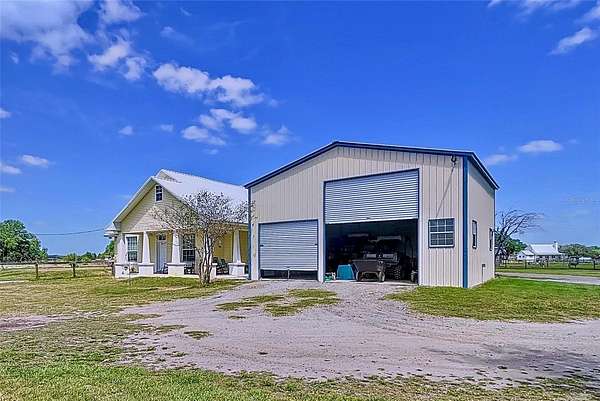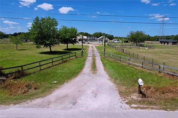 From U.S. Highway 92, head toward County Road 640 (also known as Knights Griffin Road) just east of Plant City. Turn south onto CR 640 and continue for approximately 2.5 miles through the rural countryside. When you reach Tom Matthews Road, turn right and follow it west for about 1 mile. The entrance to 3108 Tom Matthews Rd will be on your left, marked by an electric gate and security cameras. The property is easily recognizable by its large metal garage and multiple barns, offering a clear visual cue that you've arrived.