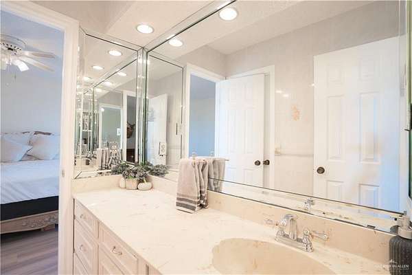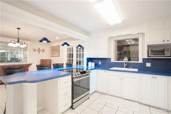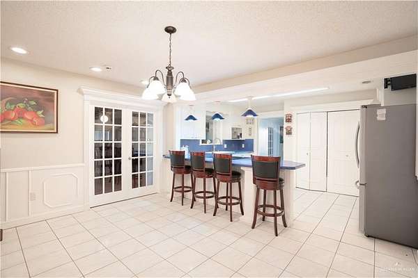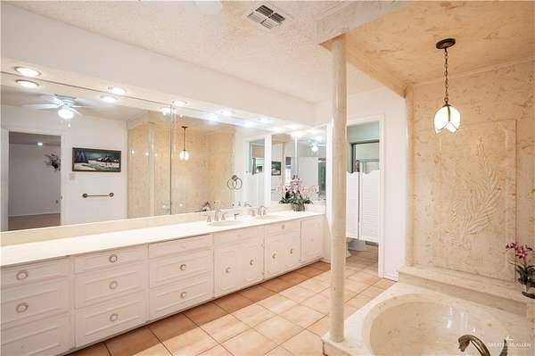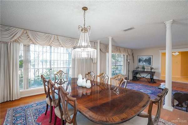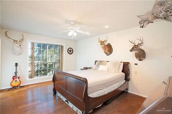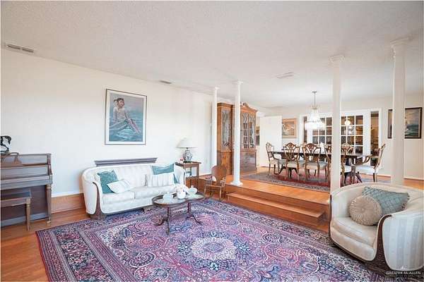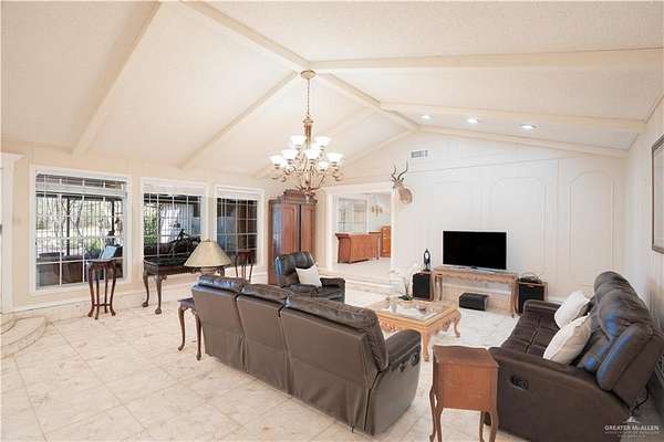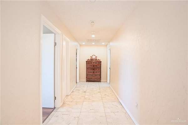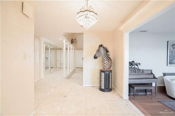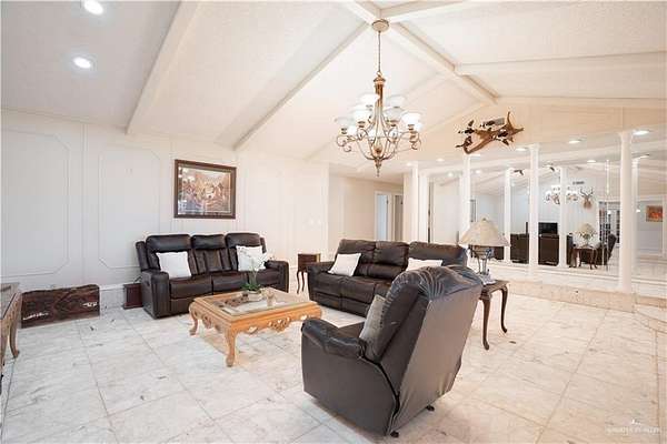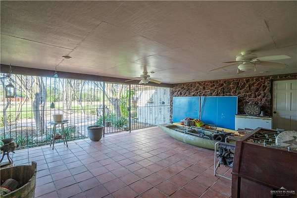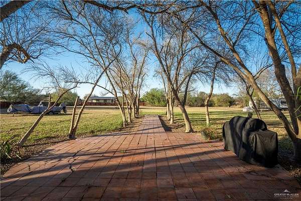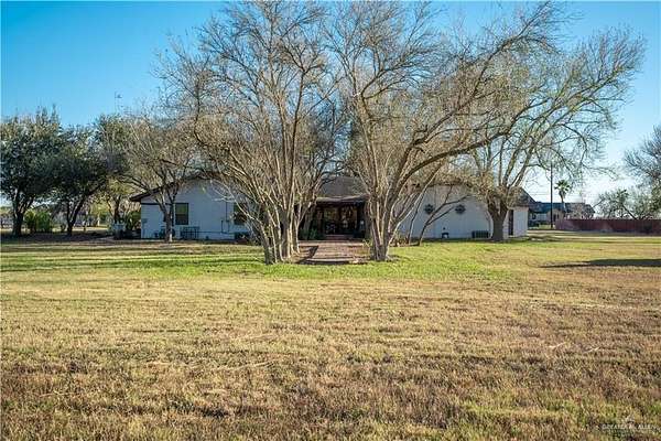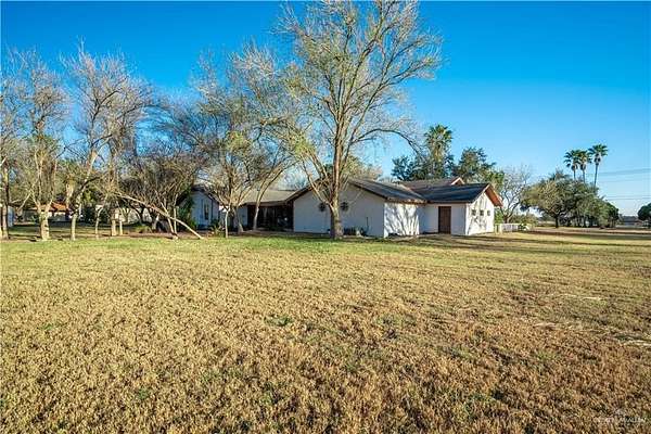 2.88 Acres in Weslaco, TX! Rare find just outside of city limits. Nestled on nearly 3 acres of lush, tree-lined land filled with natural wildlife, this estate provides the peaceful lifestyle of country living. Step inside to discover a spacious and thoughtfully designed floor plan featuring three distinct living areas, ideal for entertaining or relaxing. Elegant marble and Saltillo tile floors flow throughout, adding warmth and character to each space. The heart of the home custom kitchen, complete with custom sapphire blue quartz countertops, a cozy breakfast bar-perfect for family meals or morning coffee. The expansive primary suite is your personal sanctuary, featuring a sitting area and a generous ensuite with a sunken bathtub, offering spa-like relaxation at the end of the day. This property offers a fully fenced backyard, U-shaped driveway with parking for over 10 vehicles and cost saving well irrigation.