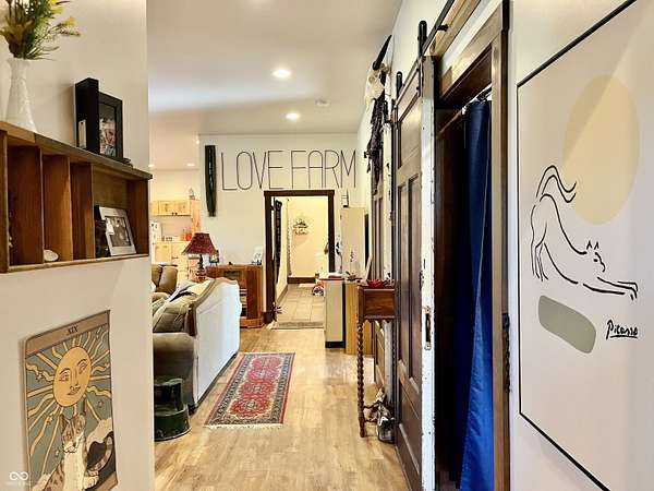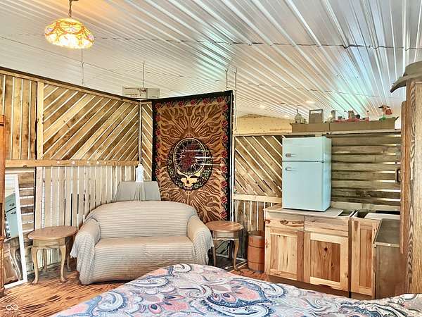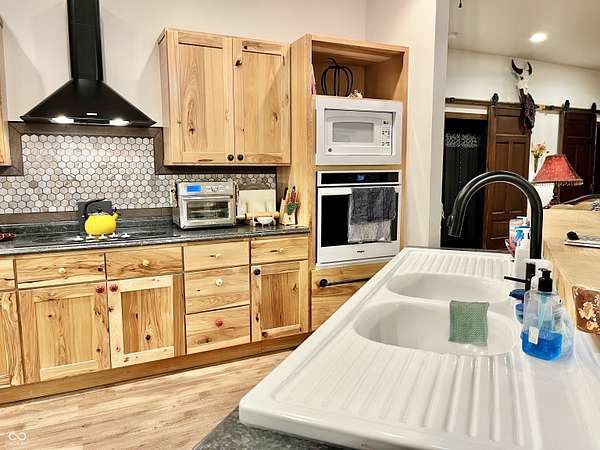 Located in western Decatur county, minutes away from Hartsville, this 4600+ sq ft residence offers a blend of homesteading with barndominium style! The 8+ acres of fenced in pleasure bursts with Pecan & Persimmon trees, Apple & Cherry trees, Pear & Peach trees, Asparagus & Thornless Blackberries, 3A of meadow, a small barn with a lean all to keep you active outdoors. A Generac generator helps provide peace of mind while a solar field keeps your energy bill low! The expansive porch offers quite lovely sunset & lake views when you're ready for R&R. Step inside & note the kitchen features a large island with a double drain porcelain sink, an ash slab counter top & serves as a central gathering point. To round out the culinary vibe there's a vintage ice box & pendant lamp. The living room atmosphere is enhanced by a one-of-a-kind entertainment center adding character texture, while the windmill fan is a true focal piece! Throughout the home you'll find an abundance of hickory cabinets, black Delta plumbing fixtures to complement the rustic ambiance of bygone days & honeycomb accent tile cleverly placed. Flooring throughout is tile or waterproof plank making cleaning easier and there's even a mud room/butler pantry which also serves as a laundry area. Design elements with yesteryear in mind are on display in each of the 3 bathrooms, one includes an antique clawfoot soaking tub. 4 oversized neutral bedrooms, offer flexibility for creating your own sanctuary or inviting comfort for your guests. 1 is located in the garage loft with it's own, living quarters! The expansive garage is conditioned separately with its own HVAC system and 200 amp electrical panel. It has a pull through side to equip a camper or RV with a full hookup, room for a lift, and can house an additional 2-3 vehicles with its 2 additional garage doors. Schedule your private showing to see what country charm, privacy & the tranquility of rural living can be like with this custom built property.