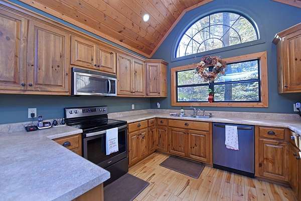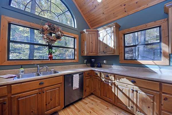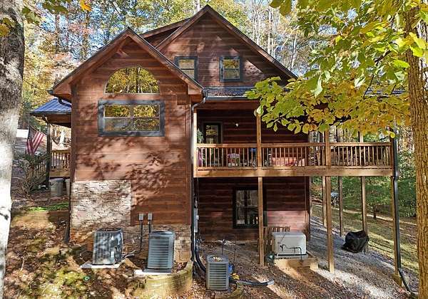 Mountain paradise! 1. 7 acres of private, peaceful quiet with small creek. Feel right at home in desirable Laurel Brooke, a friendly gated community, Perfect getaway for entertaining or enjoy full time living in this 4 Bed/3.5 bath home. Windows! Windows to enjoy mountain living, watch the deer & just breath! Nice mix of wood, stone & drywall. Cozy living with cathedral ceilings, gas Stone fireplace with wrap around covered deck. Hardwood floors throughout the house. Gorgeous chef's over-sized kitchen with granite & breakfast bar. Open concept to dining/ living area & nicely decorated. Spacious primary bedroom suite opens to covered deck, large bath with double vanities, jetted tub & shower. Upper level has two bedsrooms, large closets & bath. Watch the deer & enjoy the outdoor fire pit area next to a small bubbling creek. Lower level includes office space, storage, 2nd living area & bedroom with full bath. Walk out terrace level to covered patio, Detached shed can be used as workshop. Whole House Generator & move in ready to make this your forever home. Peaceful surroundings, quiet neighborhood & near Lake Nottely, a marina & public boat ramp. A convenient 15 minutes from town.