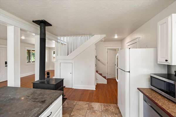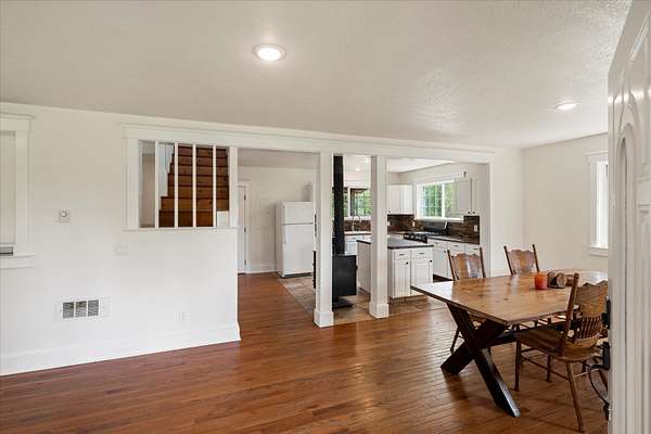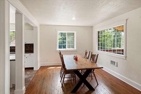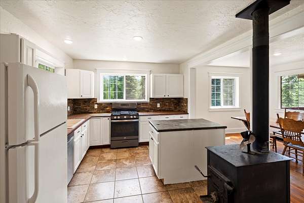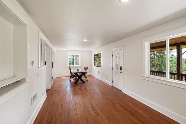 Retreat to outdoor tranquility at this classic mountain home on 6.7 acres! This lovely 3 BD/ 2BA home sits in a hilltop clearing with views in every direction and large windows to take it all in. The deep porches are the perfect spot to appreciate the fresh air and scenery year-round, while the open main floor is inviting and bright with fresh paint and trim, hardwood floors, and new fixtures. The kitchen is open, with a wood stove centrally located to heat the home in the winter months. Upstairs, the bedrooms have tall ceilings and large windows to provide elevated views. A 36X28 shop and 10x10 shed provide space for parking, outside storage, and projects. Many improvements have been made to the property and home, including improving the circular driveway and parking areas and grading a garden area outside the kitchen door. Inside, there are new fans, wall heaters, outlets/switches, door knobs and new cabinet hardware. Enjoy all the effortless style and comfort of a country home.