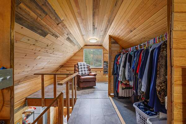 The existing cabin is powered by a robust solar array including battery storage, providing modern comforts in an off-grid setting. Inside, the main level features a welcoming living room, full kitchen, laundry area, and bath, while the loft above offers a spacious sleeping area with room for storage and personal touches. Step out onto the covered front porch and take in the sweeping western vistas--sunsets here are a daily spectacle. The property's southern and western exposures ensure ample light year-round, even in the winter months.