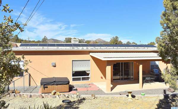Indian Hills compound with paid solar on 4.56 acres! Enjoy space, privacy, and energy independence in this 3-bedroom, 2-bath Southwestern-style home located in the desirable Indian Hills neighborhood. The property includes two lots totaling 4.56 acres and features a fully paid-for solar system with batteries, a 30x50 insulated shop, a 23x28 RV garage, and a two-car carport Inside, the 1,916 sq ft home offers a split floor plan, open living and dining area, updated kitchen, attached two-car garage, private patio with hot tub, and a durable standing seam metal roof. The insulated shop includes multiple 110V and 220V outlets and a gas heater-perfect for a studio, workshop, or future casita. Additional highlights include a fenced garden with raised beds, a 2,500-gallon rainwater catchment tank, and beautiful mountain views. Just minutes from town, this Indian Hills property combines comfort, sustainability, and room to grow.