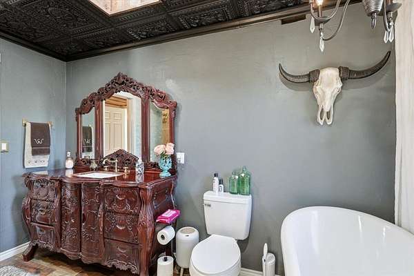 - Ceiling Fan(s), High Ceilings, Skylight(s), Tile Flooring, Vinyl Flooring
