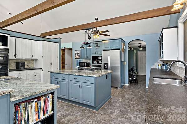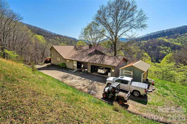 Perched at 3,117 feet in the mountains of Burnsville, this rare 15+ acre property borders 2,444 acres of protected National Forest and offers sweeping views of the Black Mountains. With pastures, springs, woodland trails, and expansive living spaces, this unique mountain retreat offers incredible potential for those seeking privacy, creativity, and room to make a home truly their own. Recently reintroduced to the market at a significant price reduction and priced below appraisal, it presents a rare opportunity in one of Western North Carolina's most beautiful settings. PLUS IT IS PRICED WELL BELOW RECENT APPRAISAL. Inside, the dramatic great room spans nearly 1,300 square feet beneath soaring 20-foot ceilings, creating an open living space filled with natural light. Eight skylights and expansive windows bring the outdoors in, including some stained-glass accents. The scale of this space invites creativity-perfect for gathering with friends, creating cozy reading corners, filling the home with plants, or hosting unforgettable mountain retreats. The spacious kitchen opens seamlessly into the great room, designed with entertaining and shared cooking in mind. Features include double ovens, gas cooktop, veggie sink, and abundant workspace, making it easy for multiple cooks to enjoy preparing meals together while staying connected to the living space and views beyond. The main level offers a flexible layout with two spacious bedrooms, two full baths, and a half bath for guests. The primary suite is privately positioned at the end of the hall and features walk-in closets nearby with an easy opportunity to create a connected ensuite bath and closet configuration if desired. The lower level expands the possibilities even further, offering two oversized bedrooms, a full bath, and an expansive mechanics/storage room with potential for a future kitchen or additional living area. This level could easily serve as a guest suite, multigenerational living space, or rental opportunity. A tandem two-car garage provides additional space for vehicles, workshop use, or hobby storage. Outdoor living is equally special. Expansive decks frame breathtaking mountain sunsets, while koi ponds, springs, and blooming gardens create a peaceful mountain setting. Three open pastures provide space for animals, gardening, or small-scale homesteading-making this property a true mini-farm and pollinator's paradise. Recent improvements provide peace of mind and a strong foundation for the next owner, including a new elaborate plumbing system, a premium 2024 roof with storm-nailed high-definition shingles and high-flow ventilation, a new well pump with updated wiring, and a new storage building. Recently reintroduced to the market at a significant price reduction and priced below recent appraisal, this property represents a rare opportunity to own a truly unique mountain home with incredible acreage, views, and room to make it your own. If you've been searching for privacy, creative space, and a mountain setting with unlimited potential, this Burnsville retreat is ready for its next chapter.