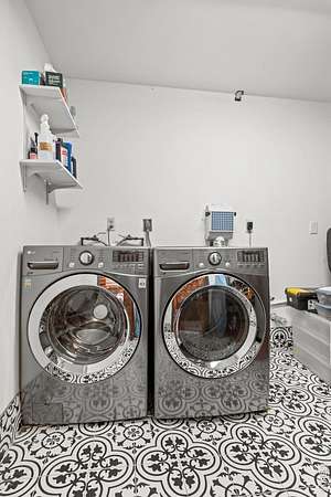 - Dishwasher, Disposal, Dryer, Electric Range, Fire Alarm, Microwave, Refrigerator, Washer, Water Purifier Owned, Water Softener Owned