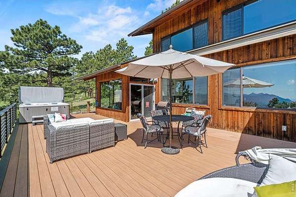 Wake to stunning views and sunrise at an expansive home that feels like a forest retreat surrounded by the natural beauty of Colorado. Access to Broadway shops, coffeeshops, and restaurants is just 12 minutes away, and downtown Pearl St. is in a 20-minutes reach. This mountain house was renovated in 2021, has 4 BRs, 2.5 BAs. The house comes with a hot tub, 2 fire places, a spacious deck and a side lanai. The house faces the south allowing sun exposure all year around. It is an all-around perfect house surrounded by welcoming and community-centered neighbors. There are numerous private hiking trails accessible within a 10-min walk. Access to downtown Pearl St is just 20 minutes away. This is a perfect retreat-like home with expansive, panoramic views. Unobstructed views; very few houses in Boulder Heights have this type of open view (most face trees). This home overlooks Denver, Boulder, Longmont, and the back of Flatirons. Every day there is a different view; from dramatic clouds, fog, panoramic city views, to overarching rainbows. South-facing (sun exposure 365 days and lower heating fees in winter). Total privacy - the deck doesn't look into another house (but can see neighbors from the sides). Private hiking/running trails 10 min walk from the house. Wonderful, helpful, community-centered neighbors.