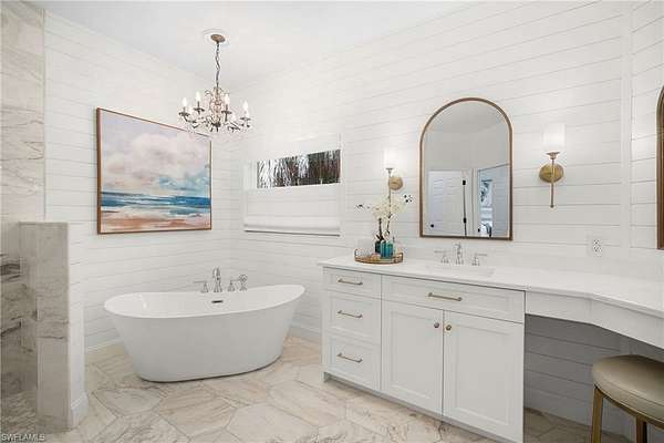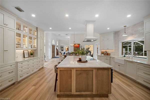 Stunningly Remodeled Coastal Retreat in Naples, FL Located west of I-75 and minutes from downtown Naples and its world-renowned beaches, this breathtaking 5-bedroom, 4-bath home sits on 2.73 acres of lush, tropical landscape. Completely remodeled with a classic coastal design, this home offers both luxury and functionality in every detail, this home is truly move-in ready and waiting for you to make it your own. Key Features: Spacious Layout: 5 generously sized bedrooms, 4 modern bathrooms, and a dedicated home office perfect for remote work. Chef's Kitchen: Featuring exquisite Taj Mahal quartzite countertops, custom cabinetry, large island, stainless steel appliances, beverage drawers, and a wine fridge, double ovens, induction cook top, this kitchen is every chef's dream. A walk-in pantry adds extra storage for all your culinary needs. Family Room & Formal Living Room: The family room offers a cozy gathering space, while the formal living room, complete with a fireplace, provides an elegant touch to your entertaining options. Upgraded Finishes: Impact windows and doors throughout provide added security and peace of mind, while the whole-house reverse osmosis system ensures pure, clean water throughout the property. 2 newer A/C units with ultraviolet lights, new water heater., well and pool pumps ensuring that you can enjoy peace of mind and convenience. Outdoor Living: With 2.72 acres, there's plenty of room to create your own private oasis, and the home's newer roof ensures lasting durability. Three-Car Garage: Ample space for vehicles, storage, or a hobbyist's dream workshop. This property combines the best of modern design with the charm of coastal living, offering easy access to Naples' finest beaches, shopping, and dining. It's truly a one-of-a-kind gem in one of the most sought-after areas of Southwest Florida. No Flood insurance required!