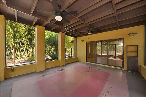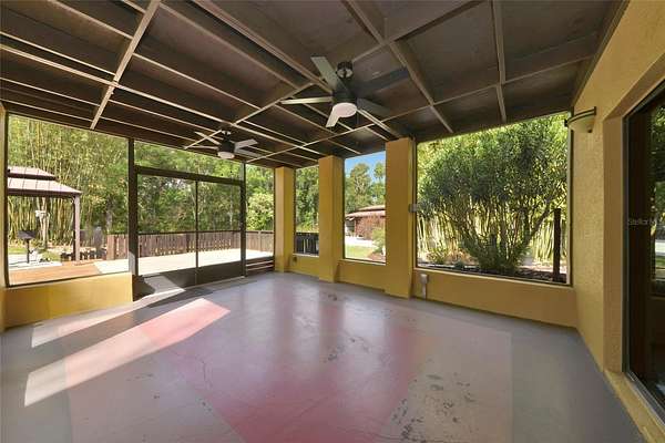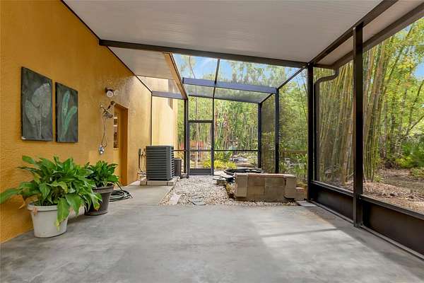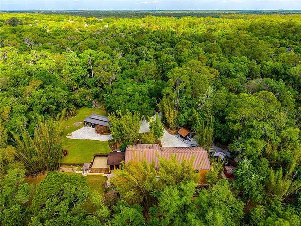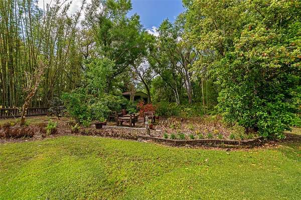 As you approach, you’ll immediately notice the sense of seclusion. The attached 3 car garage could easily be converted to a Mother In Law Suite. Set well back from the road and accessed by three charming bridges, the property welcomes you into a peaceful, private retreat. The grounds are something truly special and not typical landscaping, but a thoughtfully curated natural oasis. Lush bamboo gardens and a rich variety of subtropical plants are strategically placed throughout the property, creating a setting that feels more like a botanical escape than a backyard. Adding to the tranquility, a river winds through the wetlands portion of the land, visible through a backdrop of mature forest. This natural barrier not only enhances the beauty but also provides exceptional privacy from neighboring areas. The unique blend of uplands and wetlands creates a peaceful, campground like atmosphere across different areas of the property, an uncommon serenity that’s hard to replicate. Functionality meets flexibility throughout. A large portion of the acreage is already cleared and usable, featuring multiple sheds, a 4 car carport, and abundant storage options. The oversized 3.5 car garage is built extra deep, offering valuable flex space perfect for a home business, workshop, craft area, or future expansion. Outdoor living is just as impressive, with two screened lanais, an open-air deck, and an extended patio spaces designed for relaxation, entertaining, and soaking in the surrounding nature. It’s the kind of property where every day feels like a getaway. Located within Sundance, residents enjoy a rare combination of freedom and amenities. The community allows for home-based businesses and horses, and offers access to a marina and stables all with minimal restrictions and an incredibly low HOA fee of $220 a year. If you’ve been searching for a property that offers strength, space, privacy, and a deep connection to nature...this is it.