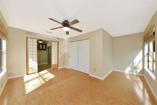 - Ceiling Fans(s), Primary Bedroom Upstairs, Solid Wood Cabinets, Split Bedroom, Thermostat, Walk-In Closet(s)
