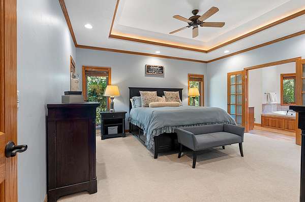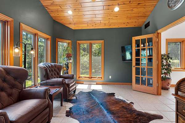 Meticulously maintained ranch tucked away on a secluded, heavily wooded 5-acre lot in the West De Pere School District. The residence offers the perfect balance of comfort, elegance & privacy. The kitchen & dining area flow into a spacious LR centered around a cozy gas FP. Enjoy summer days on the back patio or unwind on the screened-in porch while taking in the peaceful wooded views. The 1st flr primary suite boasts a tray clng, tile shower & generous wk-in closet. Adt'l mn-level highlights include formal dining rm, inviting den, half bath & convenient 1st-flr lndry. Finished LL provides 2 adt'l bdrms, full bath, large rec rm, plenty of storage & wkout to the scenic backyard. 30x40 detached garage too! Showings start 10/6/25. Offers to be presented as submitted; 48hr binding acceptance.