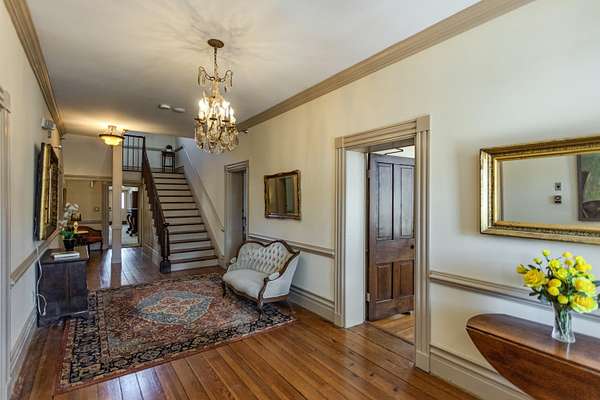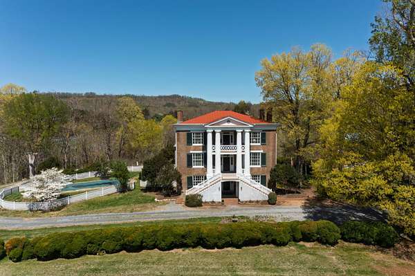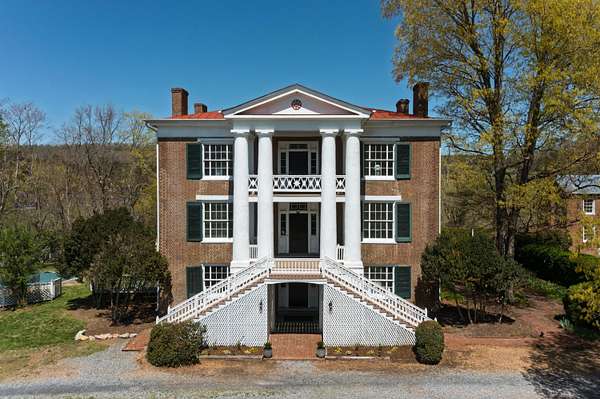 Maple Hall (c. 1850) - Historic Estate & Business Opportunity in the Shenandoah Valley - Greek Revival masterpiece offers history, architectural interest, and business opportunity situated on 7.65 acres at the high-visibility crossroads of U.S. Route 11 and Exit 195 of Interstates 81 and 64 just outside of Lexington, Virginia.This remarkable historic estate centers arounds its grand two-story brick mansion with English basement, featuring gorgeous original details like its giant Doric columns, Flemish bond brickwork, 10-over-10 sash windows, walnut interior doors, heart pine floors, and decorative fireplace mantels throughout.