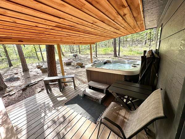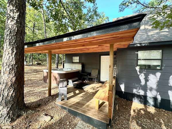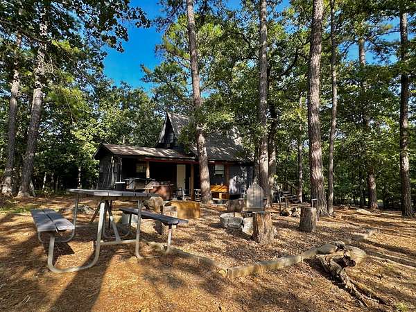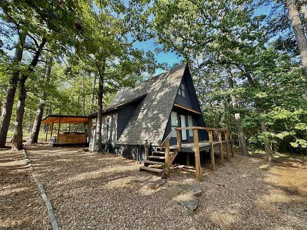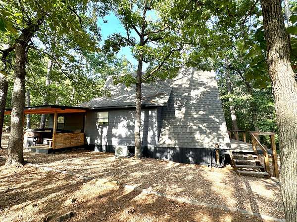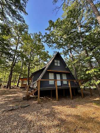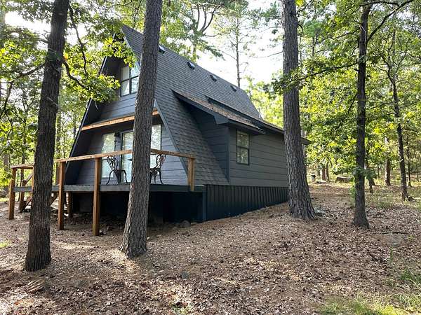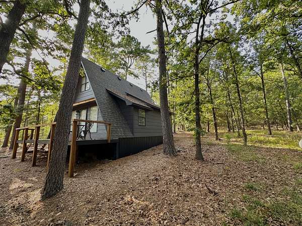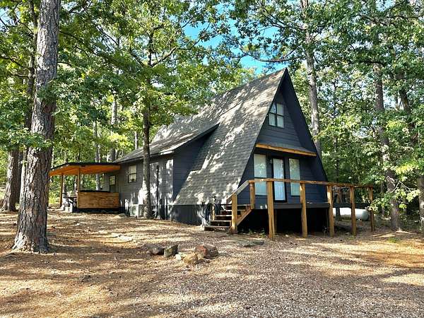 Welcome to Pocohantas Cabin. This beautiful 3 Bed and 1 Bath Vacation home is income producing and sits on 4.74 +/- Acres in LeFlore County, OK. Just minutes away from Wister Lake and Wister Wildlife Management Area. The newely remodeled 1,100 sq ft. cozy A frame has rural water plus a water well, full electric hook ups, paved county road access, graveled driveway and graveled around the house, hot tub, pine timber, walking trail, fire pit, BBQ grill, and Fully Furnished (except art work). Continue the on-going AirBnB or have your own vacation home. Dont miss this rare opportunity. 1 Mile to Wister Wildlife Management Area (35,500 Acres of Public Land) 1.5 Miles to Wister Lake 9 Miles to Wister 17 Miles to Poteau 45 Miles to Ft. Smith 190 Miles to OKC