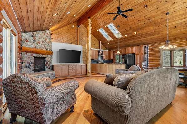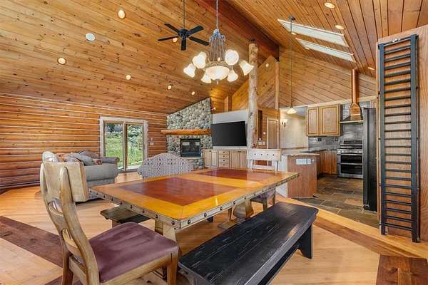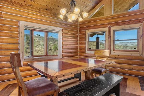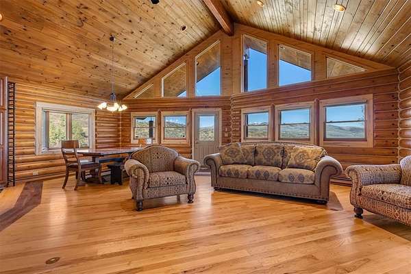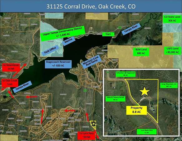 If you’ve been dreaming of an authentic Colorado mountain retreat that blends privacy, breathtaking views, and year-round adventure, this is it. Set on nearly 9 pristine acres just one mile from the 820-acre Stagecoach Reservoir, this stunning log home delivers the ultimate mountain lifestyle. Inside, soaring cathedral ceilings and a dramatic great room welcome you, anchored by a striking river rock fireplace. Expansive windows frame panoramic views of Stagecoach Reservoir, Woodchuck Hill, Blacktail and Thorpe Mountains, with Little Morrison Creek meandering below. The 18+ foot prow brings an unforgettable connection of the outdoors in. The thoughtfully designed kitchen features stainless appliances, custom cabinetry, and granite countertops, flowing into a spacious dining area that captures glowing southern sunsets. The main-level primary suite offers a private retreat with deck access, dual closets, and a newly renovated ensuite bath with walk-in shower. A guest bedroom, full bath, pantry and mud room complete the main level, showcasing exceptional craftsmanship and full-log construction throughout. The expansive lower level is ideal for entertaining, with a large family and game room, beverage bar, third bedroom and bath, plus ample storage with potential for a fourth bedroom. Outside, relax on the covered deck, gather around the firepit under star-filled skies, and enjoy the serene and peaceful setting. An oversized detached two-car garage and shed provide ample space for vehicles and gear. Year-round recreation awaits with boating, fishing, hiking, skiing, and more just minutes away, while Steamboat Springs is only 25 minutes from your door. Home is on Morrison Creek Sanitation. Adding to the property’s charm, each arrival is marked by passing your own rustic cattle chute—a nod to Colorado’s rich ranching heritage and a memorable touch that sets this property apart. This is more than a home—it’s a true mountain sanctuary.