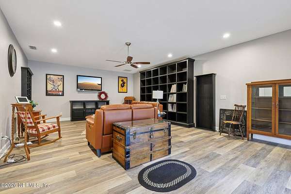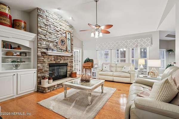 This TRULY ONE-OF-A-KIND 1.69 Acres property showcases a beautifully maintained 3-bedroom, 2.5-bath main residence spanning 2,538sqft complete with a dedicated office/library and flexible bonus space ideal for work, hobbies, or additional living. IN ADDITION, the property includes an expansive 1,700-square-foot accessory dwelling unit (ADU) carefully configured into two distinct living areas offering exceptional flexibility for multi-generational living, guests, income potential, or private work and entertainment space. The MAIN HOME welcomes you with an inviting open foyer, living room, and formal dining room, rich hardwood flooring flows throughout, with the exception of the front living room, which features designer-selected carpeting. Plantation shutters throughout including the garage along with crown molding in select areas and rooms, The 3 way split-bedroom floorplan provides privacy and separation of space. At the heart of the home, the family room serves as a comfortable gathering space, highlighted by a striking stone gas fireplace and custom built-ins that add both distinctive charm and everyday functionality. The kitchen is well-appointed with granite countertops, stainless steel appliances, a gas stove, two pantries, and a light-filled dinette area overlooking the backyard. Just off the kitchen, the spacious primary suite offers a private retreat with dual custom closets and a beautifully designed bathroom featuring separate high vanities positioned across from one another, a walk-in seamless glass-enclosed shower, a Jacuzzi tub, quartz countertops, and elegant lighting. The large laundry room includes a washer and dryer, and the two-car garage features a finished floor shark coating, and Phantom electric screen. The closets throughout the home have been professionally customized by Closet By Design, providing exceptional organization and storage. The sunroom offers 480 sqft of stone tile flooring, a mini-split system, and walls of windows that provide year-round enjoyment and peaceful backyard views. Just beyond, the space opens to a charming pergola retreat perfect for morning coffee, relaxing in the red hammock, or unwinding to the sounds of nature. The outside furniture under the Pergola will be staying. The ADU further enhances the property's versatility. One side offers a private one-bedroom guest house complete with a living room, kitchen, full bathroom, laundry room with stackable washer & dryer, and its own entrance. The other side bonus room is ideal for a media room, game room, home gym, office, or additional flex space, and also offers its own entrance, along with a convenient half bath. The outdoor setting is equally impressive, featuring a fully fenced yard with a combination of black chain link, vinyl, and split rail fencing. A whole-house generator services the main residence, while a portable generator supports the guest house and bonus room for added peace of mind. A sprinkler system maintains the grounds, and all lawn equipment is included, including a riding John Deere mower with trailer, push mower, weed eater, and Craftsman edger. Additional exterior features include a Workshop/Storage building, trailer carport near the work shed, and an enclosed, insulated carport providing versatile covered space. The owners have taken exceptional care of this home, evident in its condition, thoughtful upgrades, and overall attention to detail. Buyers must present a Pre-Approval letter or Proof of Funds prior to making a showing appointment. See the document section for the complete feature list of the home.