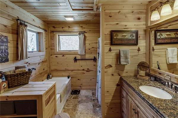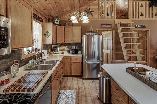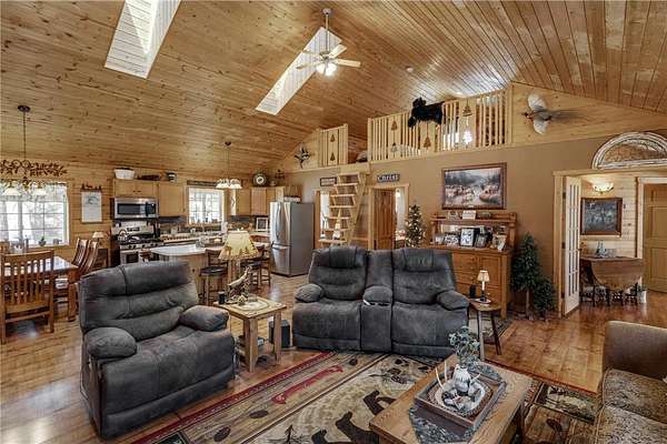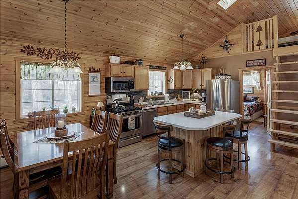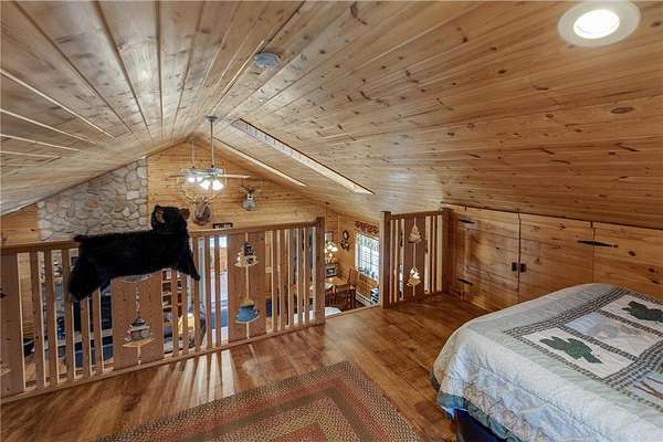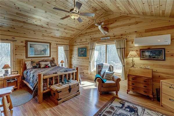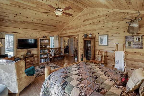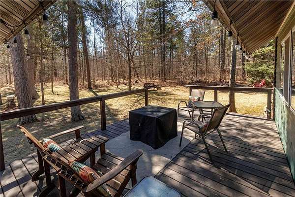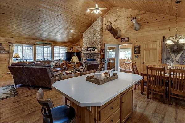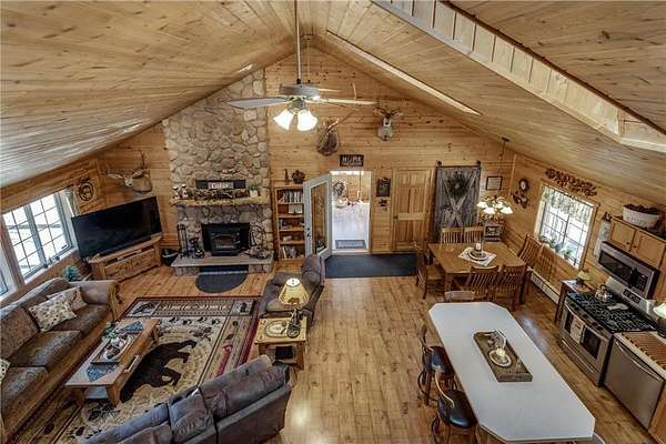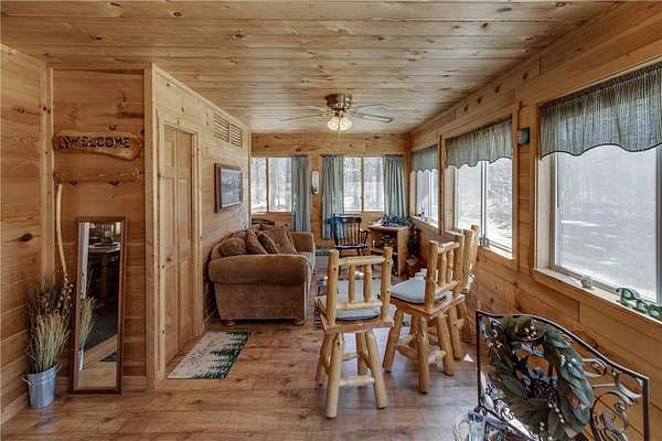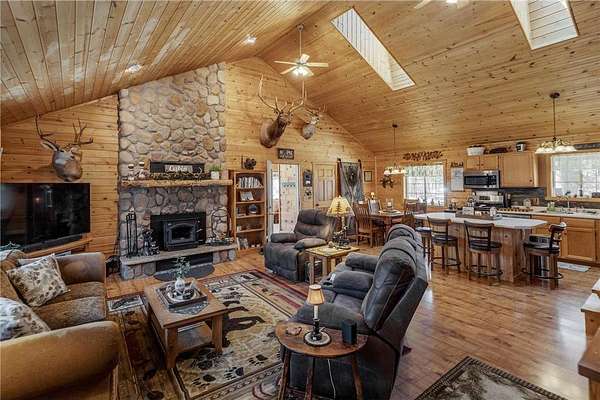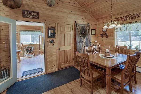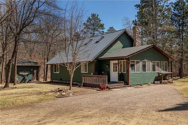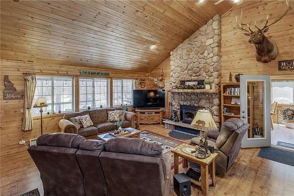 Escape to your own private retreat with this beautifully updated 3-bedroom, 2-bath home set on 23.5 secluded acres of mature trees and peaceful surroundings. Designed for comfort and space, the home features a beautifully constructed primary suite, an open floor plan with vaulted ceilings, and a warm, inviting great room centered around a stunning floor-to-ceiling fireplace. Rich pine tongue-and-groove finishes throughout create a true up-north feel, while large windows fill the home with natural light and offer beautiful views of the backyard deck and wooded landscape. Enjoy quiet mornings in the 3-season porch and endless room to roam, relax, and entertain. A spacious 32x48 shop building provides excellent storage, workspace, or room for all your recreational toys and a bunkhouse for extra guests. If you’ve been searching for privacy, elbow room, and the perfect blend of comfort and country living, this property is a must-see.