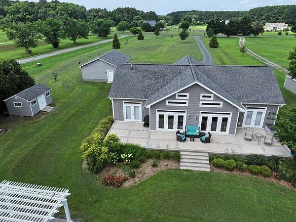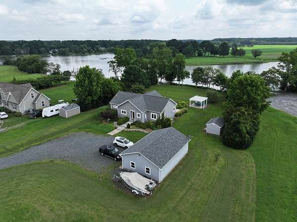 Shores of Nandua Circa 2018: Meticulous precision planning perfected on this 1.9-acre professionally landscaped parcel with 120' of waterfrontage. 105'x 5' L-dock, 3' at MLW, with kayak launch. 2-car garage and SHE shed. Water views are amplified through the span of windows from nearly every room. Quartz countertops in the well-equipped kitchen, bamboo & porcelain tile floors throughout. Master bedroom ensuite, with walk-in closets. Dining, family, kitchen, library, and sitting rooms are an open floor plan. 2 additional bedrooms and full bath, patio with and a pergola. The crawl space is a conditioned, encapsulated space. Nandua Bay is a well-established, large home site development featuring a community boat ramp and dock. 2.25 interest rate, $267,000. assumable mortgage, SWEET