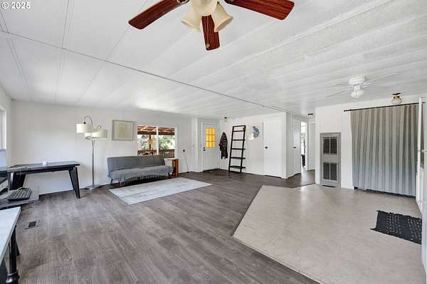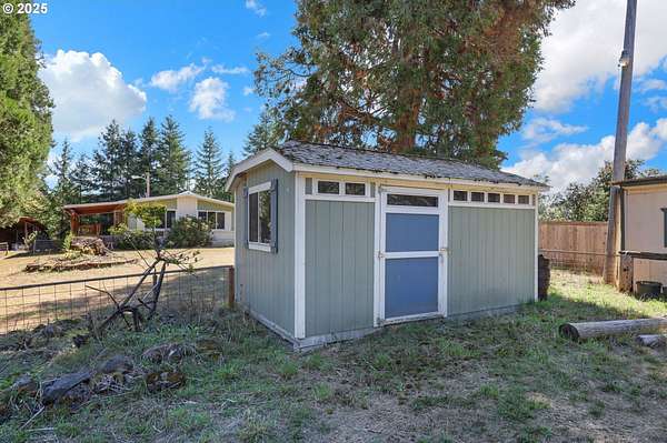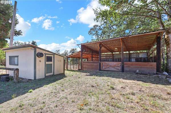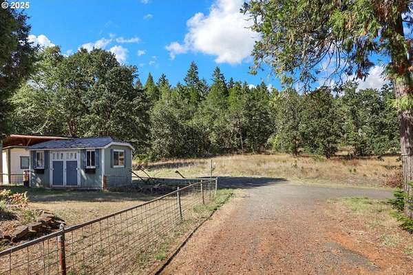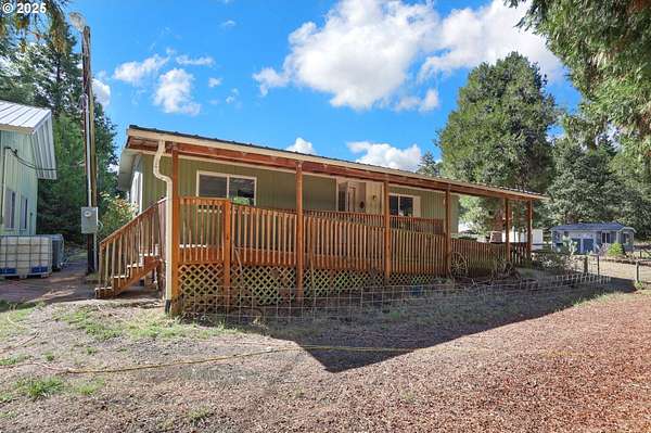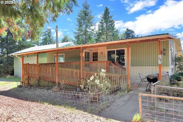 Beautiful and private 17 plus acres south of Cottage Grove. The property boasts gentle slopes with the perfect mixture of pastures and trees with beautiful mountain views and tons of privacy. The property is fenced and cross fenced making a very special place for livestock or horses. The 1976 manufactured home is post HUD however has been previously moved so qualifies for VA financing, the home was reroofed in 2016, and there is a new electrical service between the house and the shop, also new spray foam insulation in the shop. The house has includes a bonus room that could be 3rd bedroom or possible office. This property boasts many outbuildings including, 24x30 Shop, 40x60 Hay Barn, 7 Stall 40x50 Horse Barn, 12x16 Tack Room, and a 12x16 Garden Shed. Seller may be willing to finance and offer seller concessions or credits with acceptable offer.