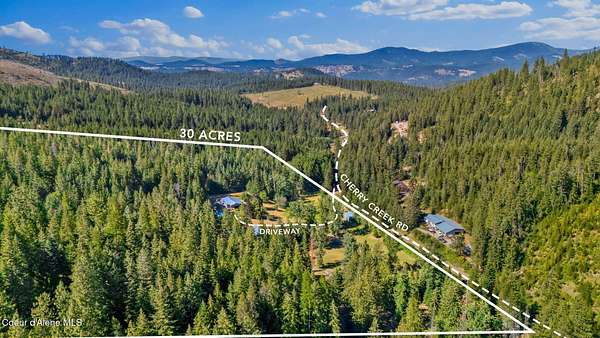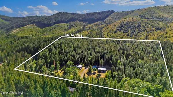 Spacious 3BD/3BA home on nearly 30 private acres in St. Maries! Over 2,800 sq ft with two full kitchens-ideal for multigenerational living or rental potential. Walkout basement, detached 3-car garage, and two large shops. Backs up to state land for endless recreation: ATV riding, hunting, hiking & more. Cherry Creek runs through the property and there's a mature orchard with apples, cherries, plums & raspberries. Wildlife galore-moose, elk, deer, turkeys, and more. 10-15 acres of marketable timber. No cell service, but satellite options are available. Only 15 minutes to town and the boat launch. Peace, privacy, and Idaho beauty await!