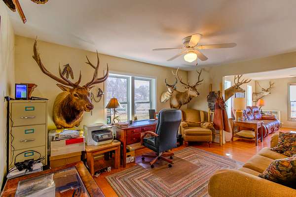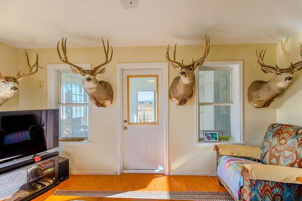 The ranch has a 1,916 Sq Ft, 3 bedroom, 1 full bathroom, 2-story farmhouse plus a large basement. The historic farmhouse was built in 1907 and has been lovingly cared for and updated over the many years. The home has a modern heat system and the home has free propane to keep the home nice and toasty on the cold winter nights. The home has a fenced yard with plush grass and multiple fruit trees and Cottonwood Trees for shade