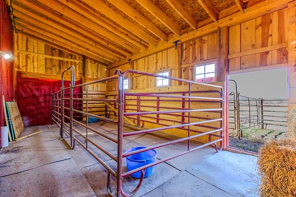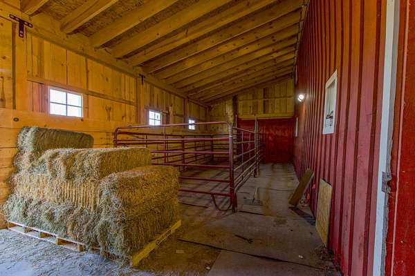 There is a 4,000+ Sq Ft barn that has been well cared for that features horse stalls, tack room, hay loft, and many areas for storage and indoor work areas along with covered parking for 3 tractors. There ia also a 1,326 Sq Ft hay shed that provides plenty of storage to keep your hay harvest dry.