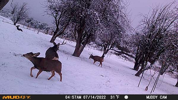 The ranch provides great habitat for mule deer, elk, turkeys, bears, bobcats, coyotes, mountain lions and many species of small game animals. There are extensive 2 trac trails to horseback ride, hike, mountain bike or ride your ATV around to explore your piece of paradise. The trail system allows you to get close to any big game harvested and to assist in packing out your trophy.