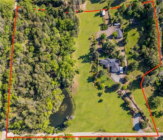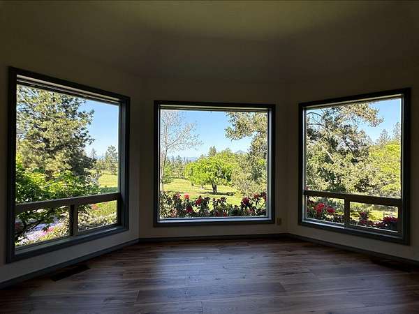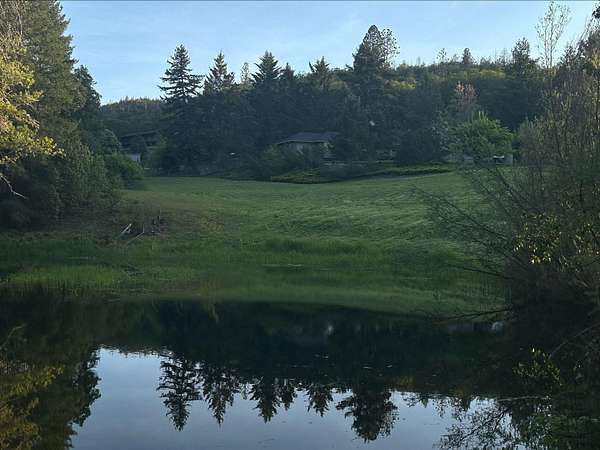 Park-like setting with a forested seasonal creek and pond in the Coleman Creek foothills south of Medford. This well-appointed home features granite countertops, a master suite with whirlpool tub, walk-in closet and hot tub access, central vacuum, heat pump with AC, and a wood-burning fireplace. Large windows provide scenic views of the yard, forest, mountains, and pond. Finished 3-car garage plus 15x30 RV port for ample parking and storage. Property includes underground utilities, a good well with 2,000-gallon storage tank, inground sprinklers, and 3 acres of TID irrigation rights. Fenced backyard with rose garden, raised bed, and orchard area with original 100-year-old apple trees still producing, plus cherries, peaches, pears, persimmons, and grapes. A 25x40 shop with 9' and 7' roll-up doors and 100-amp panel offers great workspace. New roofs on house and shop. Includes garden shed and storage barn. 2024 survey confirms 10 acres with RR-5 zoning.