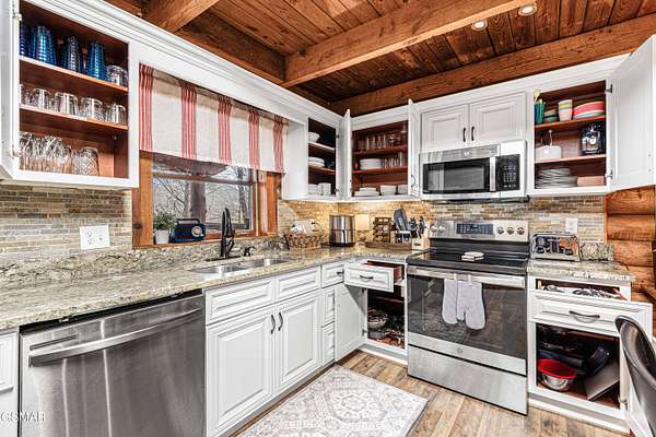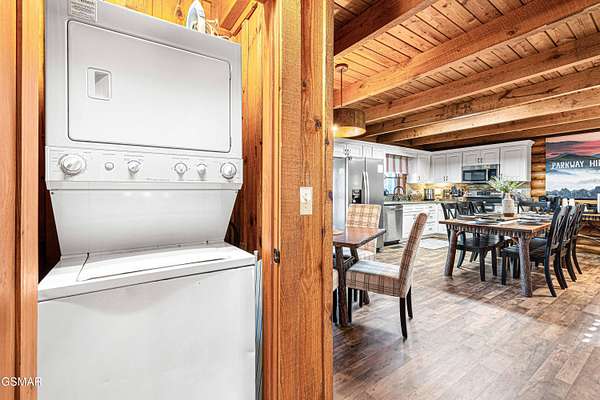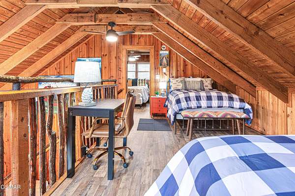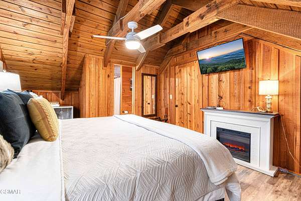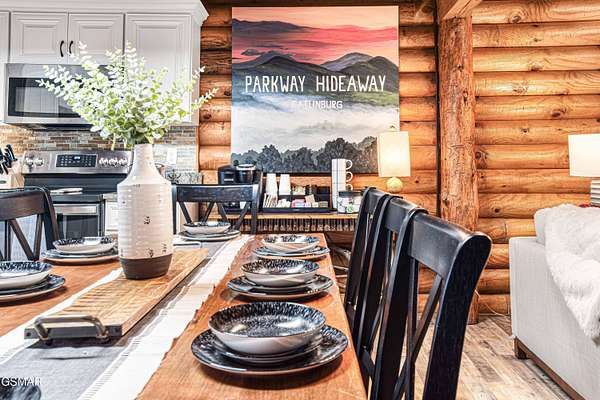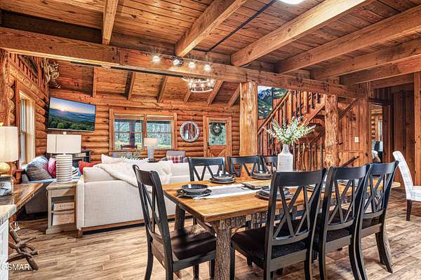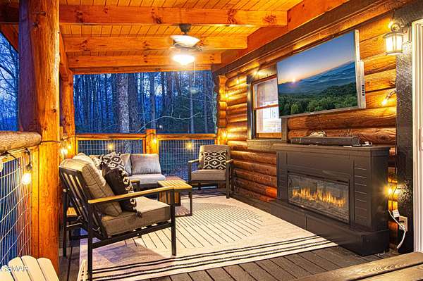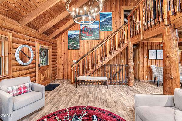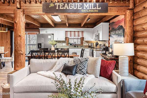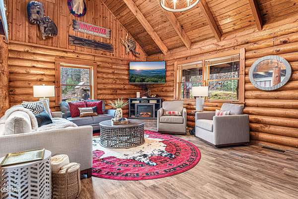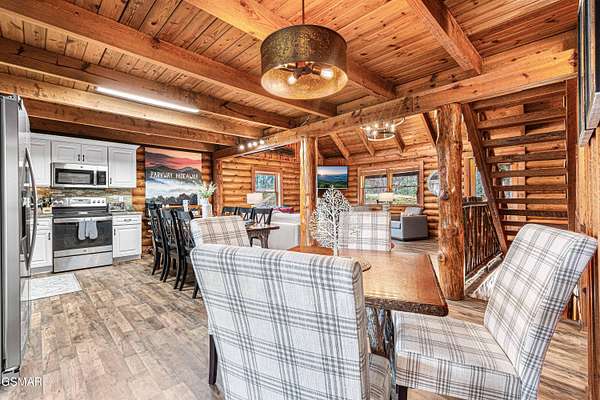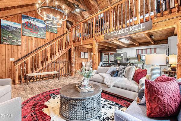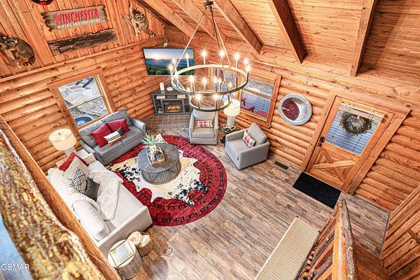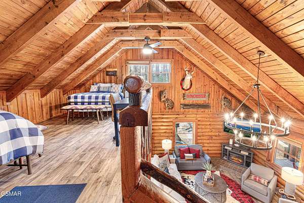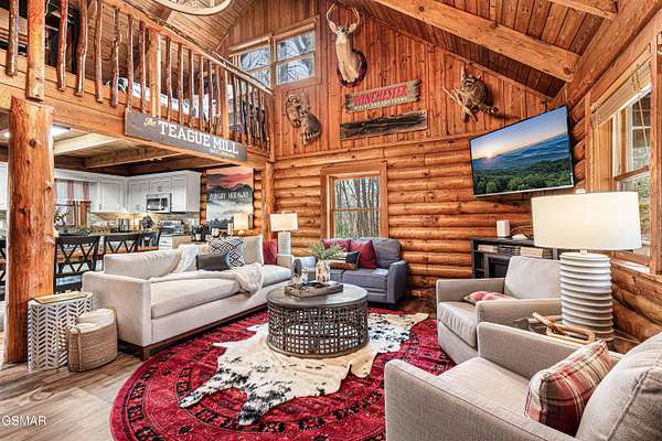 Nestled in the tranquil woods of the Smoky Mountains, this charming Rustic Cabin offers the perfect blend of seclusion and outdoor living. Renting as a 3BR/3.5BA, this Cabin also has a large Loft AND recreation room and is set up to sleep up to 12 people!!! With three spacious levels of living space it's an ideal setting for entertaining guests or enjoying peaceful moments. The Cabin's open concept design features beautiful log accents, wood floors, wood beam ceilings, and knotty pine walls that evoke a true mountain atmosphere. Thoughtfully furnished with mountain-inspired decor, every room is designed for comfort and relaxation. Step outside to a vast outdoor oasis, complete with a large patio, cozy fireplace area, and two expansive levels of decking perfect for soaking in the breathtaking surroundings. For added relaxation, enjoy the hot tub, arcade games, and plenty of outdoor space for recreation. Located just 10 minutes from downtown Gatlinburg, this property is easily accessible with paved parking and no steep roads. Currently a successful rental property, this turn-key cabin boasts a strong income potential with projections of $120K for 2025. This property is the ultimate Smoky Mountain retreat for both personal enjoyment and investment. Drone photography used in some photos.
