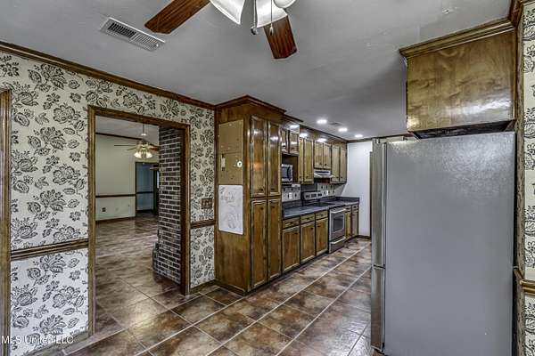 This 4BR/2BA home offers 1940 sq ft of living space on 5 acres. You can have peace of mind knowing that the HVAC and roof have recently been replaced. The garage/shop has a new tin roof, power, concrete floors, new windows, and a roll-up door, making it ideal for storing an extra vehicle or lawn equipment. A portion of the property is fenced for horses, and there is a newly built barn equipped with double side doors, a loft, and room for stabling horses. Current owners have replaced the sewer and water lines, removed dead trees, added neutral paint in the den, hallway, bedrooms and closets, and updated the primary bath and walk-in closet. Whether you want to start a small farm, or just enjoy the peace and quiet, this property has it all. Don't miss your chance to make it yours!