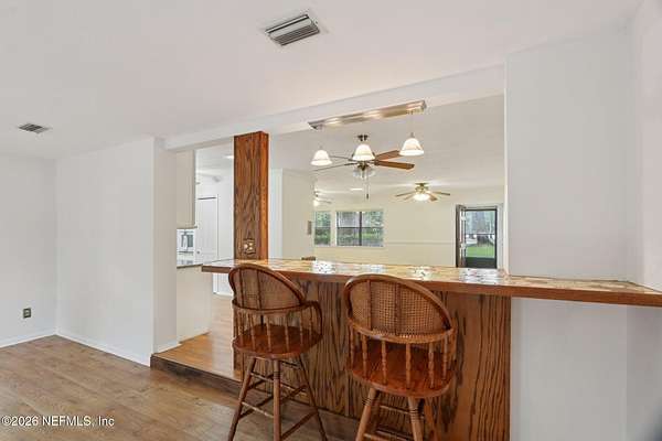 - Breakfast Bar, Ceiling Fan(s), Eat-In Kitchen, Entrance Foyer, His and Hers Closets, Shower No Tub Primary Bathroom, Split Bedrooms
