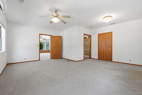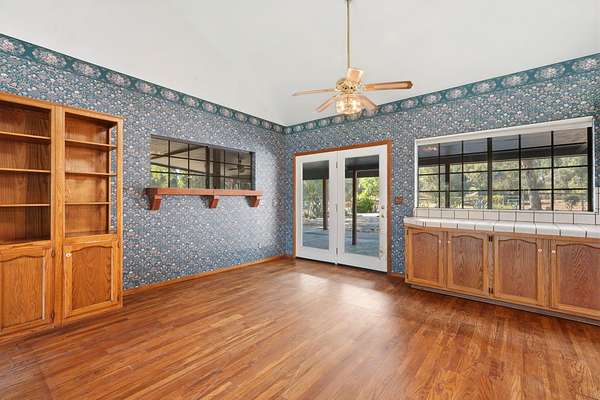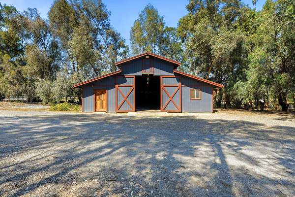 Welcome to your private Mehrten Valley property-where wide open space, mature trees, and a true country setting create the foundation for your ideal rural lifestyle. Situated on 5 fully fenced acres in one of Exeter's most desirable country neighborhoods, this property is perfectly suited for the horse enthusiast or anyone looking to create their own custom retreat. The equestrian setup includes a 3-stall horse barn, hay barn, multiple fenced pastures, and a peaceful pond, offering a functional layout for animals and outdoor living alike. Tree-lined boundaries provide natural beauty, shade, and a sense of privacy throughout the property. The home offers 3 bedrooms and 2.5 bathrooms, along with a 1 bedroom, 1 bathroom in-law quarters featuring a separate entrance-ideal for extended family, guests, or flexible living arrangements. Inside, the open floor plan connects the kitchen to the main living area, where a brick fireplace with insert and bay window create a warm and inviting space. While the home reflects its original character and presents an opportunity for cosmetic updates such as flooring and finishes, several major systems have already been addressed, including a newer HVAC system for the main home and a new mini-split for the in-law quarters. Owned solar adds long-term energy efficiency and value. Additional features include an indoor laundry room with half bath, an oversized garage complete with pet wash station and toilet, and a covered attached carport. The primary suite offers access to a large private deck-perfect for enjoying the peaceful surroundings. An automated gated entrance welcomes you to the property, and a backup generator provides added peace of mind by supporting both the home and pond during power outages.