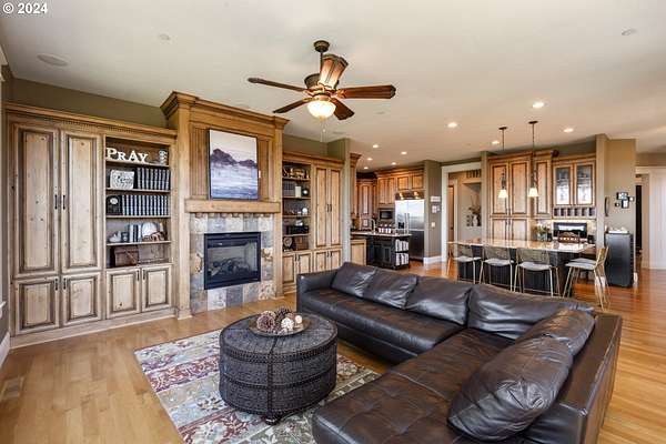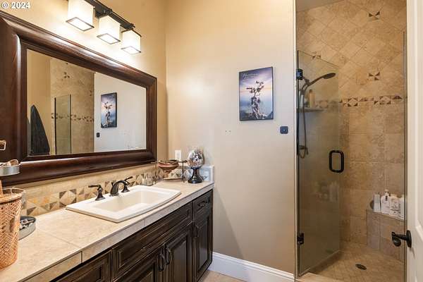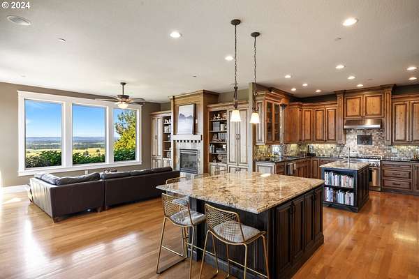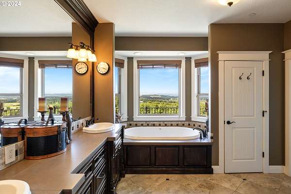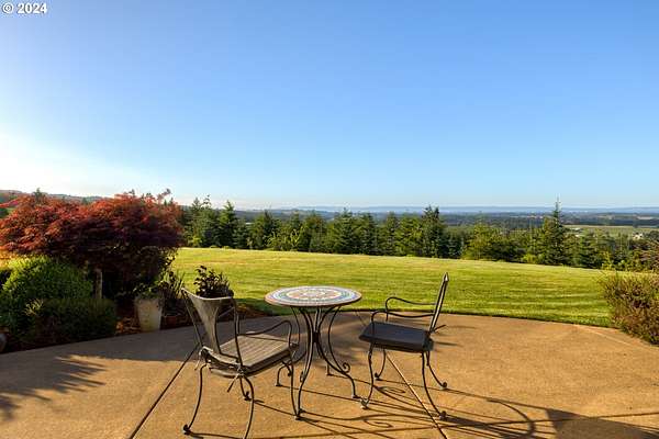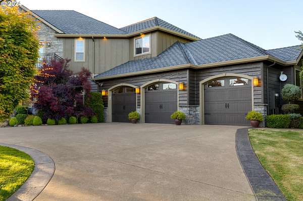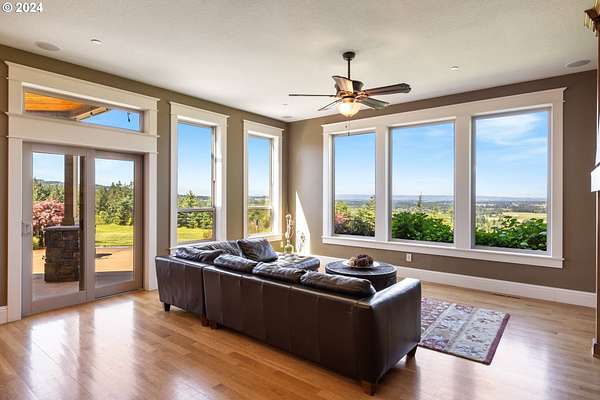 A Rare Hilltop Retreat in Oregon's Wine Country! Imagine waking up to golden sunrises over Mt. Hood, with clear views of Mt. St. Helens and Mt. Rainier on the horizon. Welcome to your private sanctuary, an elegant wine country estate nestled above the valley, where sweeping views and sophisticated design come together in perfect harmony. As you arrive, the grand circular driveway sets the tone, framed by manicured landscaping and room to accommodate guests or RV parking. Inside, rich hardwood floors and soaring ceilings make an unforgettable first impression. The living room draws you in with a stunning wall of windows, a cozy fireplace, and a sense of quiet grandeur. At the heart of the home is a chef's dream kitchen complete with two islands (one for prep, one for gathering), a gas range, double ovens, and a walk-through butler's pantry. Whether hosting a wine tasting or sharing coffee in the breakfast nook, this space flows beautifully into the family room with built-ins, a second fireplace, and access to the expansive patio. The main-level guest suite offers complete privacy with its own patio access, making it perfect for multigenerational living or weekend visitors. Upstairs, each of the four bedrooms boasts its own balcony, bringing the outdoors in. The luxurious primary suite features two walk-in closets, a spa-like bath with a jetted tub, and sunrise views you'll never tire of. The bonus room adds flexibility, and the full unfinished basement invites your imagination, maybe a home gym, wine cellar, or future guest quarters. Step outside to unwind. The large patio and lush lawn provide room to breathe, play, and entertain, all backdropped by some of Oregon's most iconic views. Tucked in the heart of wine country and just 10 miles to urban amenities, this is more than a home, it's a lifestyle of beauty, balance, and possibility. [Home Energy Score = 6. HES Report