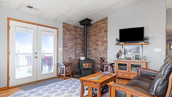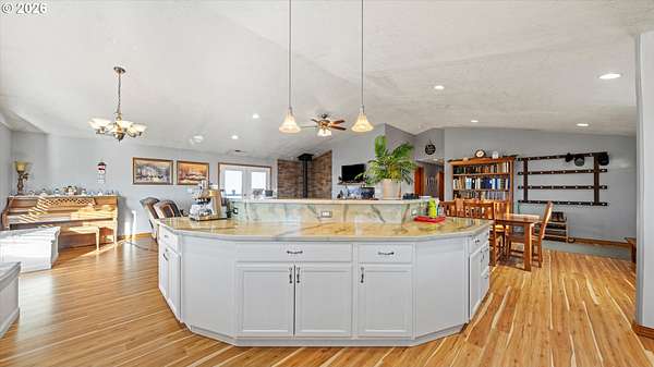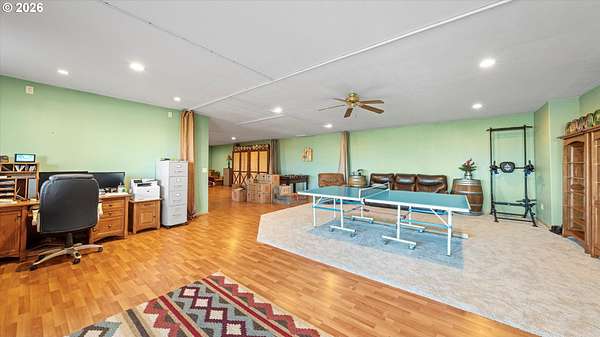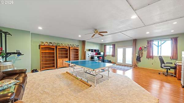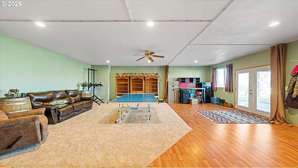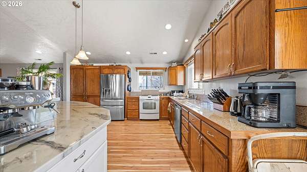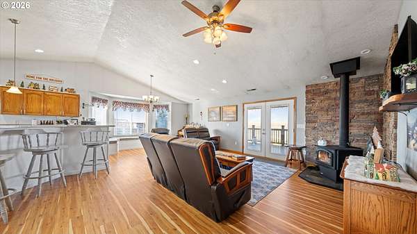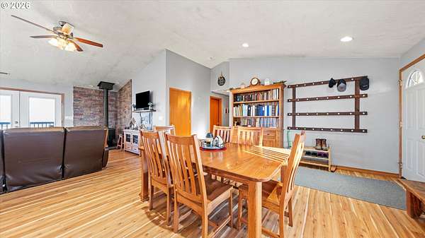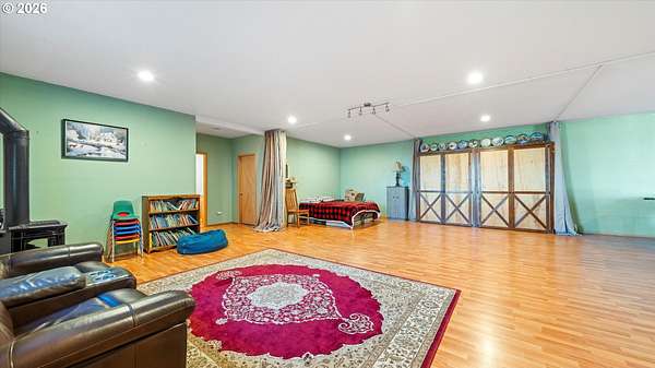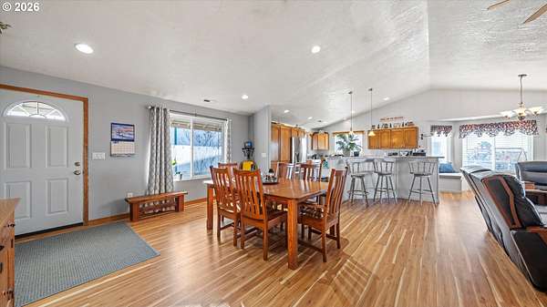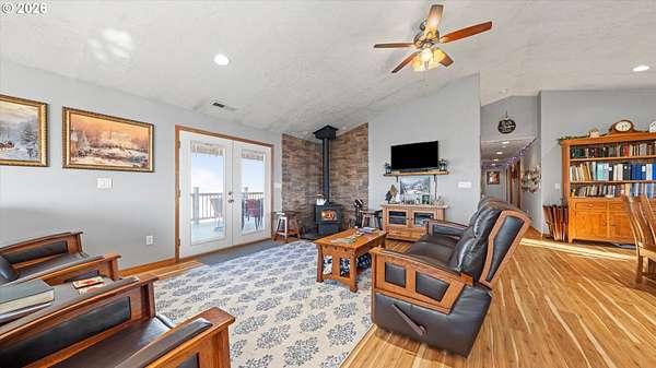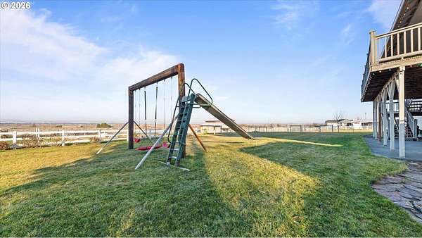 Welcome to your very own homestead dream on 2 acres perfectly set up for animals, hobbies, and wide-open living. This 3,000+ sq ft home offers main level living, including the laundry room, with an open-concept layout connecting the living room, kitchen, and dining area. Enjoy the charming built-in kitchen nook with bench seating and abundant storage throughout the home and property.Downstairs, the daylight basement provides a massive open space ideal for a recreation room, additional living area, home gym, media room, or multi-generational setup. The utility/water system and hot water tank are located in a spacious dedicated room. Step outside to the walk-out concrete patio and a beautiful yard with a great above-ground pool setup.Outside is where this property truly shines bring your animals and your vision! You'll love the barn with multiple stalls, chicken coop, and a designated hay storage area. The impressive 48'x36' shop with double overhead doors provides endless space for parking, storage, and projects. Pasture water lines have been updated, making the property even more functional for livestock and outdoor use.The garden area is ready for spring and the future planting season, and you'll also enjoy a small orchard perfect for anyone wanting space to grow and live more self sustainably. Unwind on the main level deck in the summertime ideal for entertaining, BBQs, and enjoying those beautiful sunsets.This property is truly set up for your own homestead lifestyle with room inside and out to grow-come see it today!