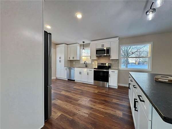 This beautifully updated 4-bedroom, 2-bath home offers space, comfort, and modern style throughout. The large kitchen features stainless steel appliances, granite countertops, and a spacious island-perfect for everyday living and entertaining. A generous family room provides plenty of space to relax, while the finished basement adds valuable extra living area with a bedroom and a separate storage room. The home also includes a convenient all-in-one washer and dryer. Outside, enjoy a large deck overlooking the backyard, ideal for outdoor dining or unwinding. A new concrete driveway and walkway lead to the front door, adding both curb appeal and convenience.