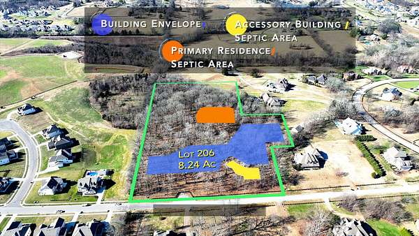 Minor Plat APPROVED by Williamson County for TWO structures on this 8.24 acre lot located in beautiful Belle Chase Farms community in Franklin, Tennessee. Build your custom DREAM HOME in highly sought after Franklin... and Approved and recorded plat with two (2) SEPTIC AREAS (Primary Residence 5 bdrms and separate septic area to service Accessory Structure (Barn/Shop/Pool House). Within minutes to shopping, restaurants, schools, and access to I65 travel into Nashville, this beautiful 8.24 acre lot features huge building envelope, underground utilities and high-speed fiber internet to name a few. BUILD READY STATUS, this is your opportunity to bring your custom builder and create something truly special. Enjoy both peaceful country living and the convenience of being close to all that Franklin has to offer.