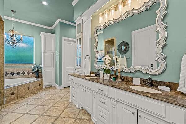 - Built-In Features, Cable TV Available, Chandelier, Decorative Lighting, Double Vanity, Eat-In Kitchen, Flat Screen Wiring, Granite Counters, High Speed Internet Available, Kitchen Island, Natural Woodwork, Open Floorplan, Pantry, Wainscoting, Walk-In Closet(s), Wet Bar