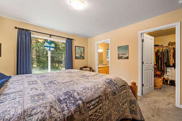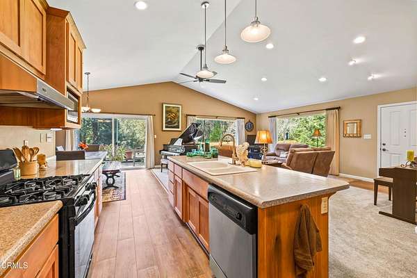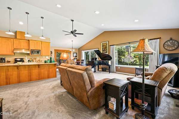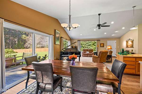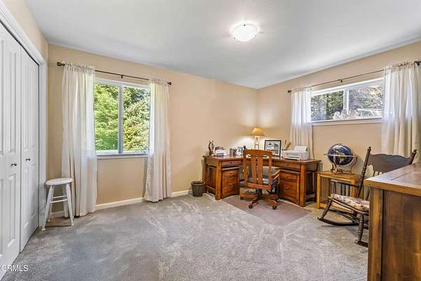 Tucked at the end of a quiet lane, this thoughtfully designed property offers a rare combination of privacy, usability, and proximity, just 10 minutes to downtown amenities, coastal beaches, and scenic trails, yet perfectly positioned beyond the morning marine layer for added sunshine. Built in 2005, the 1,500+/- sq. ft. home features an open-concept layout where the living room, kitchen, and dining area flow seamlessly together. Vaulted ceilings and dual-pane windows fill the space with natural light, while a gas range anchors the well-appointed kitchen--ideal for both everyday living and entertaining. The home includes two spacious bedrooms, a flexible third room currently used as an office, two full bathrooms, and a dedicated laundry room with access to the rear deck. A large hardwood deck extends the living space outdoors, offering an inviting setting for relaxing or hosting. Additional features include a circular gated driveway, a two-car garage, and approximately 500+/- sq. ft. of upper-level space above the garage--already permitted and sheet-rocked, ready to be finished as a studio, guest quarters, or workspace. An 11kW whole-house backup generator provides year-round peace of mind. The property also offers ample room for expansion, including the potential for an additional dwelling with a separate entrance. Located outside of the California Coastal Commission, the permitting process is notably more streamlined and cost-effective.Set on a fully usable 2.5-acre parcel, this meticulously maintained property is equipped with irrigation, an automatic sprinkler system, and a 2,500-gallon water storage tank--supporting lush landscaping and the hobby garden you've always envisioned, complete with a charming greenhouse.
