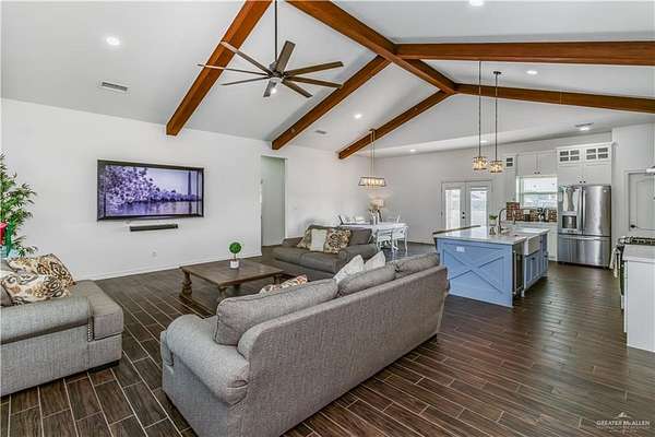 Experience refined country living on 2 fully fenced acres within city limits. This modern farmhouse offers 3 bedrooms, 2.5 baths, and a desirable split-bedroom layout designed for both privacy and connection. The open-concept living space is filled with natural light, creating an inviting setting for family gatherings and entertaining. The chef-inspired kitchen flows seamlessly into the dining and living areas, making everyday moments feel special. The primary suite is a private retreat featuring a spacious walk-in closet, double vanity, garden tub, frameless glass shower, and private commode. Secondary bedrooms are thoughtfully positioned for comfort and functionality. Animals are permitted, offering space for children to explore and room to grow. A storage shed adds convenience, while the expansive acreage provides endless possibilities for outdoor living and lasting memories. Schedule your Tour Today!