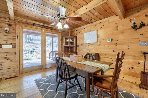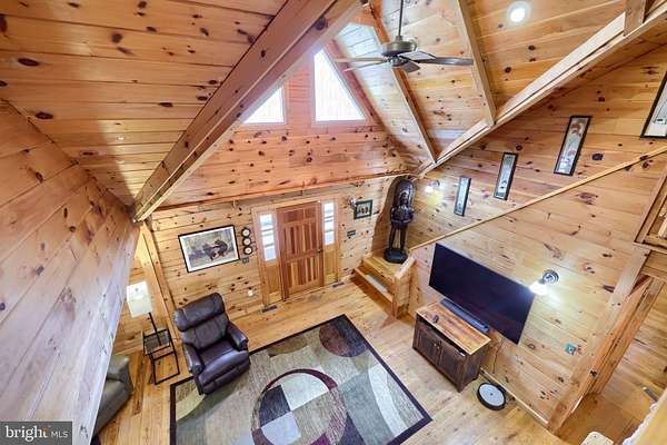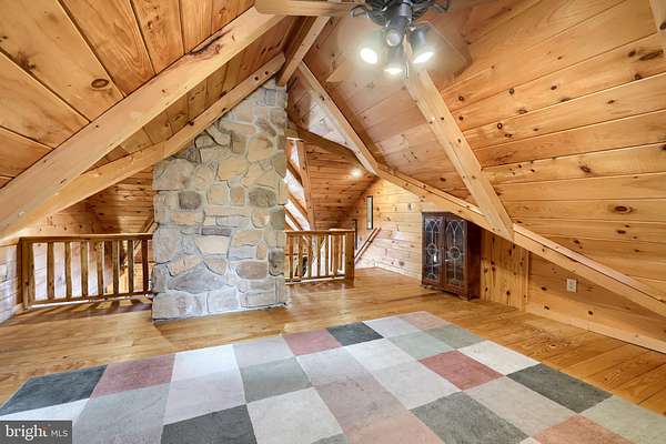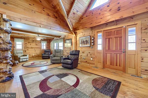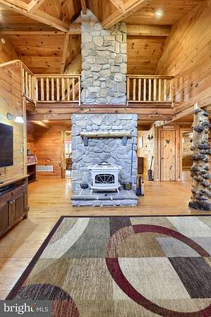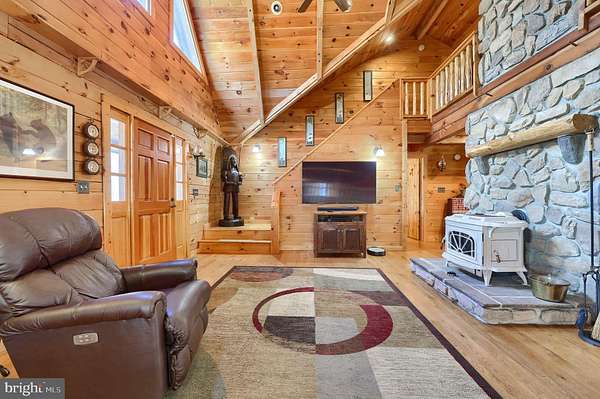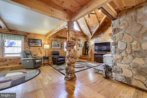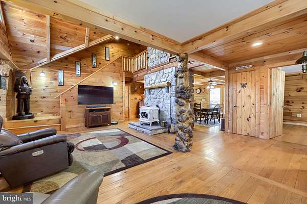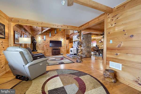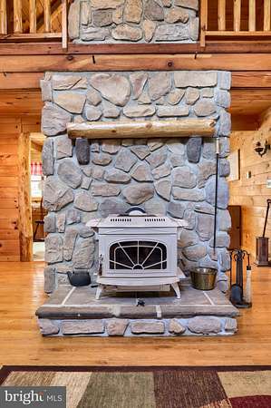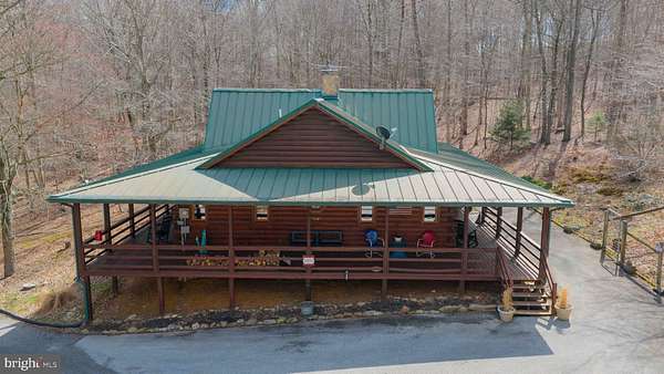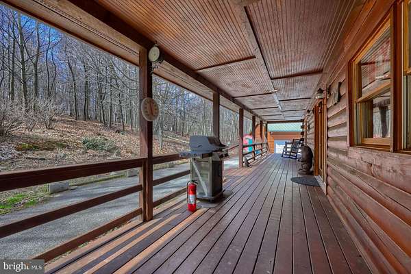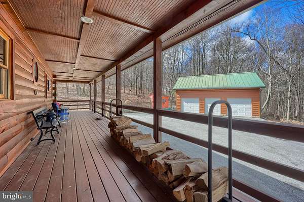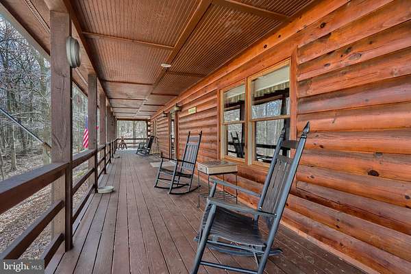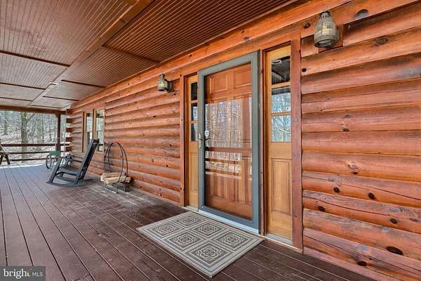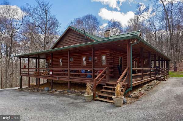 Wake up to the sounds of nature and your private serene sanctuary nestled on 6.8 acres of pristine wooded homesite, where nature's beauty meets modern comfort in this exquisite custom log home! This remarkable property embodies the essence of peaceful living, offering an ideal retreat for those seeking a harmonious blend of rustic charm and contemporary amenities. As you approach this stunning log cabin, the enchanting surroundings immediately capture your attention. The expansive 360-degree covered wrap-around porch invites you to unwind, breathe fresh air, and soak in the breathtaking views of the natural paradise that envelops you. Imagine sipping your morning coffee while listening to the gentle whispers of the wind through the trees or enjoying evening gatherings under a starlit sky- the essence of tranquil living. Watch the deer, turkey, and abundant wildlife, right from your porch. Step inside, and you'll be greeted by the airy cathedral ceilings and an open floor plan. This home features two spacious bedrooms and two full baths, providing ample space for family and guests. The previously utilized 3rd bedroom walls were taken down to open up the family room, so there is a possibility of putting a 3rd bedroom back in the home. The thoughtfully designed layout allows for one-floor living, ensuring convenience and accessibility. Two bonus rooms located in the basement offer endless possibilities-whether you envision a home office, craft room, or extra guest quarters, the choice is yours. The heart of the home is undoubtedly the striking custom stone fireplace wood stove, which serves as a captivating centerpiece in the living area, providing both warmth and an inviting atmosphere during cooler seasons. Complementing this home is a newer forced air heat pump/AC unit, with an oil backup, also equipped with a whole house generator ensuring year-round comfort in every corner of your home. This property is not just a home; it's a lifestyle. Completing this exceptional offering is a detached garage, providing valuable storage space for your outdoor equipment or vehicles. Embrace the tranquility of your surroundings as you explore the abundance of wildlife that calls this wooded haven home. Every day is an opportunity to reconnect with nature, whether you're hiking through the lush landscape, birdwatching, or simply enjoying the peaceful ambiance that envelops you. This custom log cabin is more than a residence; it is a celebration of nature and an invitation to a peaceful lifestyle. Don't miss your chance to own this exceptional property-where every detail has been considered for your comfort and enjoyment. Schedule your private showing today and discover the natural delight that awaits you in this idyllic woodland retreat.