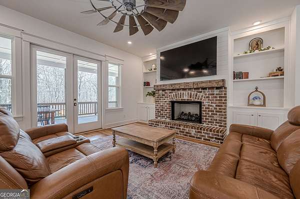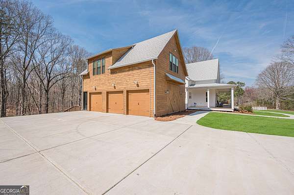 Welcome to a rare and peaceful escape in the heart of Waleska, where six acres surround a thoughtfully designed custom modern farmhouse that blends comfort, beauty, and nature! This stunning seven-bedroom, five-and-a-half-bath home delivers exceptional living space across three finished levels including a separate apartment for multigenerational living! The construction and finishes throughout reflect a commitment to quality that goes well beyond the ordinary. Quartz countertops grace every bathroom, the kitchen, and even the laundry rooms, creating a cohesive sense of refinement from top to bottom. Wide plank luxury vinyl plank flooring flows seamlessly through nearly every room, offering both beauty and durability for a home designed to be truly lived in. The main level includes one bedroom and one and a half bathrooms, setting an impressive tone starting with a large foyer accented in shiplap, a dedicated office space, powder room features a charming apron front sink, the kitchen is nothing short of spectacular, equipped with white cafe appliances, a sixty-inch double oven with griddle, an oversized island, a farmhouse sink, shiplap backsplash, and a custom vent hood that commands attention. The living room anchors the main level with a beautiful brick fireplace fitted with gas logs and flanked by custom built-ins, creating a warm and inviting gathering space. The primary bedroom is a true retreat, offering direct access to the back porch and hot tub. The primary bathroom continues the indulgence with a clawfoot tub, a tiled shower, separate dual vanity spaces! The mud hall features handsome brick flooring and floor-to-ceiling cabinetry that keeps daily life organized. The main level laundry room includes a custom dog shower complete with a pet feeding station and pot filler, Upstairs, four bedrooms and two full bathrooms make this level ideal for comfortable living. Each bedroom showcases custom wainscoting, while both bathrooms feature tile shower surrounds. A second laundry room on this floor is a feature that residents will find exceptionally convenient. A versatile loft provides additional flexible living space suited! A large attic with two walk-in access points offers tremendous storage capacity for seasonal items and beyond. The walk-out daylight basement level features one bedroom w/walk-in closet/full bath, a theater room provides an immersive entertainment experience, while a wet bar keeps refreshments close at hand. A safe room equipped with a vault door offers serious peace of mind. Two large bonus rooms provide space for virtually any purpose, and an additional closet the size of a bedroom serves as flex space or storage. An apartment attached to the main home features a bedroom w/ full bathroom, a full kitchen, a spacious pantry, a comfortable living room, and a third laundry room. Spray foam insulation keeps energy costs in check and comfort levels high year-round, while a tankless water heater ensures hot water is always on demand! Outside, the land is set up for practical farm use. Six acres of fencing with cross fencing separating the pasture into two sections, a barn with a twelve-by-twelve lean-to offers power and water for everyday agricultural needs. Additional structures include 1000sqft main barn, 16x32 run in shelter with tack room, two 8x8 run in shelters attached to paddocks, each with its own eight by sixteen run-in shelter, helping keep animals covered through every season. Water lines serve multiple areas around the property and can bypass the filtration system for utility use. Lots of outdoor activities with a Chicken coop, greenhouse w/ watering system and power, a creek runs along the rear boundary and provides animal access. An on-site orchard includes over twenty fruit trees/bushes!