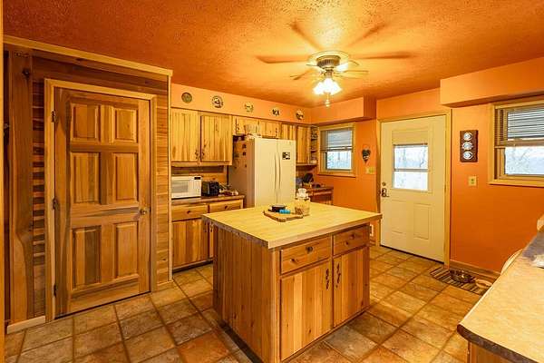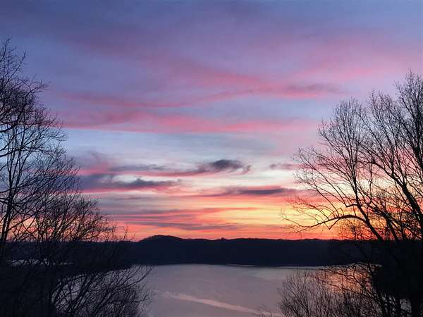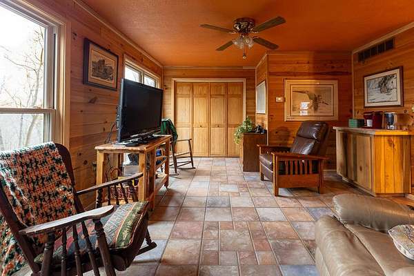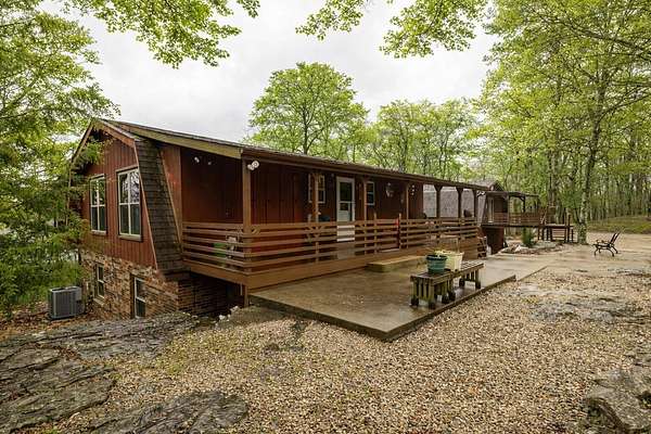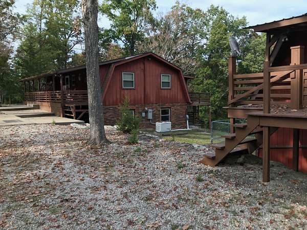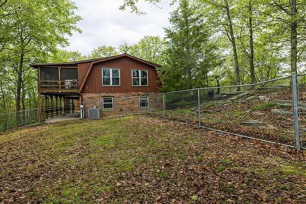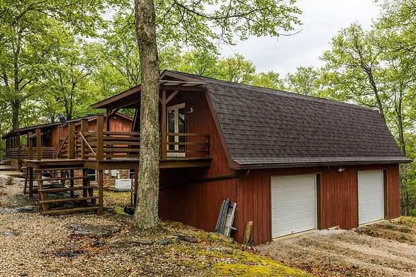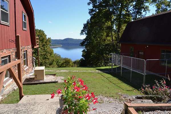 Big million dollar views of Cave Run Lake and the Zilpo penisula steal the show at this rare 13-acre retreat-enveloped within the Daniel Boone National Forest and among just a handful of Bath County-side properties lucky enough to sit in this position. Loved and lived in full-time by the same owners for over 3 decades, this year-round 3BR/1.5BA cabin offers central heat & air plus striking curb appeal. From native rock landscaping all across the front of the house and sweeping lake views from the 30' screened-in back deck makes you feel like you're the only one in the world. The main level features two living areas with nature view from every window, an office, a half bath and a kitchen equipped with refrigerator, oven (no cooktop), dishwasher and microwave. The lower level includes 3 bedrooms, a full bath, cozy living room and walkout access to a 30' covered patio running the length of the home with, you guessed it, water views. A spacious 2-car detached garage includes an upper-level woodworking studio plus a separate-entrance heated space ideal for an office or studio. The propane tank is leased through Clark Propane and fuels the charming free standing gas stove upstairs, wall heater in one of the bedrooms and the whole property generac generator. Water is supplied by a cistern (approx. 4' deep and patio-length) with water-capture system, with a pump that is approximately 1-2 years old. Not only is there a whole-house water filter but filters under each sink. The sellers have been drinking the water from the cistern for decades. The septic was replaced in February 2018; HVAC May 2024; water heater January 2024. Fast fiber optic internet. Most acreage stretches down the hill toward the lake to the DBNF land. If future expansion is in your future there are several building areas along Bobcat Lane. This is the ultimate basecamp for hiking, wildlife watching, relaxing and year-round adventure.