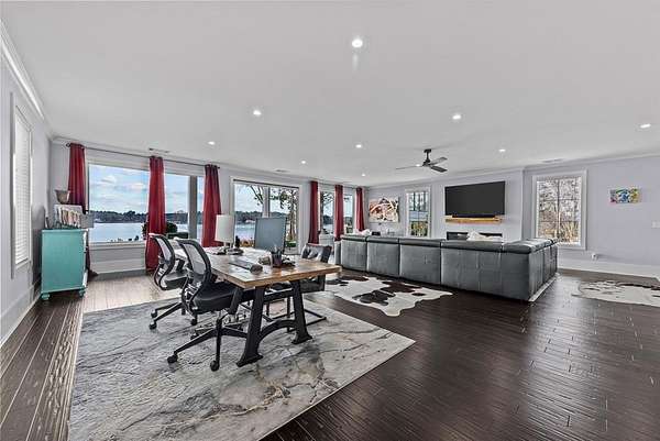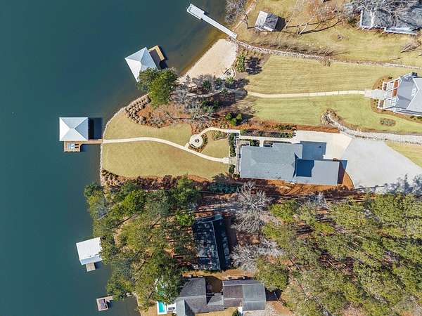This is the ONE you've been waiting for! This well maintained 4 bed, 5 bath, 4 car garage, home located on Lake Sinclair's Rooty Creek. Offering 6,000Sq Ft this home features a bright open layout, elevator for convenience, perfect for comfortable living and entertaining. Whether you're hosting a cookout, enjoying coffee on the porch, or launching into a day of water activities, this home offers the ideal lake lifestyle. Inside, the open-concept layout is filled with natural light and showcases sweeping lake views. The Main level boasts a spacious living area with fireplace, gourmet kitchen, Featuring (2) 13ft. islands. Kitchen Aid Appls, custom cabinets, and Granite and Quartz Ctops, AND a guest bed and bath. A Pella slider leads to a large deck, that offers some of the best sunsets Sinclair has to offer! The 3rd level features a LUXURIOUS PRIMARY SUITE with Fireplace and expansive lake views. The primary bathroom offers a large custom tile shower and soaking tub to relax after a long day of work. There are two additional beds and baths offering ideal accommodations for guests or extended family. On the terrace level you will find a fully finished open-concept space, with fireplace, that offers even more room to spread out and enjoy. Whether you envision a bunk space, or second living area the opportunities are endless. This level also has full bath with custom tile shower and laundry room. Step outside to enjoy a covered porch overlooking a large, level backyard, professionally landscaped, perfect for games and gatherings, along with a firepit area made for evening smores