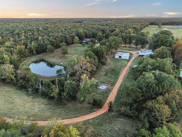 Welcome to Ward Creek Ranch, this sprawling 192+ acre ranch and custom home is waiting for you in Red River County, Texas. This property is ideal for the rancher or outdoorsman. Located at the end of a county road just east of Detroit, you will find a one of a kind 3-bedroom 3- bath home constructed in 2012. The home offers modern conveniences with rustic wood finish outs that have come directly off of the Ranch. The exterior features multiple patio and sitting areas, perfect for fall nights at home. The large shop is equipped with an office area and an additional shop with covered area. There is a small set of working pens and squeeze chute and the property is fenced and cross fenced. The good seasonal grasses and deep sandy soils offer grazing potential or hay production. 5 ponds scatter the property, and 1 larger lake offers great fishing, boating and duck hunting. Ward Creek meanders throughout the mature hardwoods and offers exceptional hunting for deer, hogs, turkey and other small game. Ward creek ranch has potential for a high fenced ranch or weekend retreat, it's ready for you to enjoy!