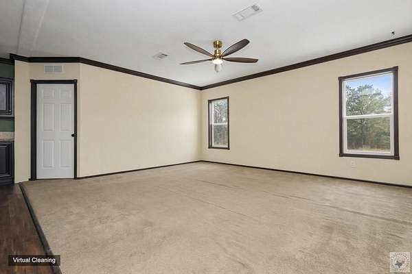 Est $992/moEnjoy country living on just under 2 acres with this 4 bedroom, 2 bath manufactured home in Simms ISD. The home features beautiful cabinetry and an open concept layout with a spacious living area. The primary bedroom includes an ensuite bath with double lavatory and shower. Outside amenities include a front porch, shaded yard, circle drive, attached carport, and storage building, perfect for peaceful rural living.