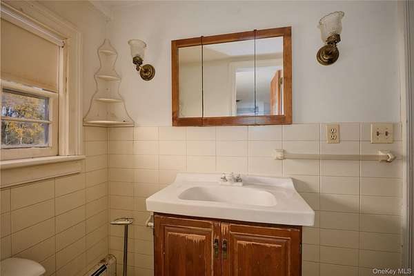 Original architectural details anchor the home in its era: wide-plank floors, detailed plaster moldings, coffered ceilings, and elegant period millwork. The generously sized kitchen is centered around an oversized brick fireplace, offering an inspiring canvas for a showpiece chef's kitchen. Large living rooms, a first-floor powder room and laundry, and a versatile upstairs layout with two additional bathrooms provide an excellent foundation for modern living.