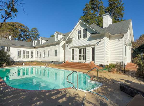 Originally constructed around the 1840s, Let's Pretend is a gracious two-story residence-one of the earliest homes in the heart of Aiken's storied Winter Colony. Today, Let's Pretend remains one of Aiken's most beloved historic estates. Set on more than two acres in downtown Aiken, the home was updated in 2017-with new electrical, plumbing, and structural systems, as well as all-new windows, doors, roof, siding, and geothermal heating and cooling. Several portions of the residence remain partially unfinished, offering a rare opportunity for a new owner to complete the vision and restore the home to its full grandeur. A broad covered front porch opens to a salon-style living room with a fireplace, wired for sound and cinema projection. The formal dining room, with two fireplaces, tall windows, and refined moulding, evokes the scale and character of the era. An expansive family room, kitchen, and breakfast area fill the center of the home-bright and open, with coffered ceilings, shiplap detailing, custom cabinetry, and a Sub-Zero refrigerator, blending period charm with modern sophistication. Among the home's most distinguished spaces is the wood-paneled library and den, featuring a bar, multiple fireplaces, and a wall of windows overlooking the pool and gardens. A circular staircase leads to an upper-level living area large enough for a billiards table workout/yoga/pilates or art studio, complete with a fireplace and natural light. The west wing includes a half bath, spacious laundry, and a luminous vestibule opening onto the pool terrace and gardens. At the far end, an unfinished primary suite wing awaits completion-revealing exposed brick, three fireplaces, and windows on every side. Plans envision three bedroom suites with a full bath above, honoring the home's history while allowing for modern luxury. Architectural plans are also available for a multi-car garage and guest house, designed to complement the estate's scale and symmetry. Throughout the home, Hitchcock and coved ceilings, original hardware, and detailed millwork remain as testaments to its craftsmanship. With its systems modernized and core structure renewed, Let's Pretend stands ready for the next chapter in its long and graceful life. Additionally Let's Pretend has the potential to be a horse property dependent upon city approval. Please see documents attached. A contributing landmark within the Aiken Winter Colony Historic District II, Let's Pretend embodies the enduring character of Aiken-where history, artistry, and equestrian heritage continue to shape its most extraordinary homes. Agents and/or buyers please verify measurement details, school zones, zoning use, internet providers - any specific info that is of importance etc. for clarity.