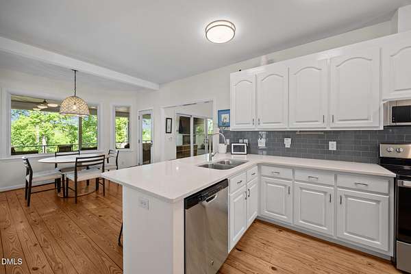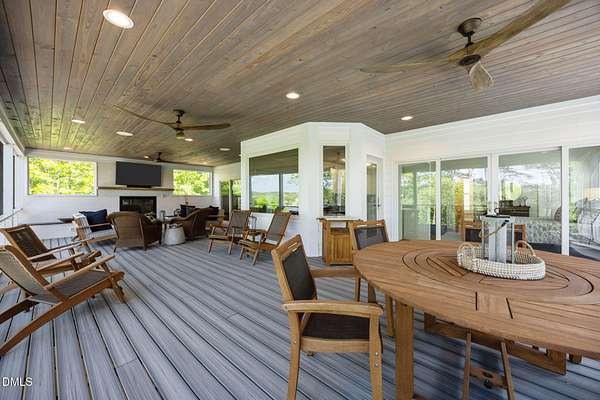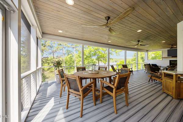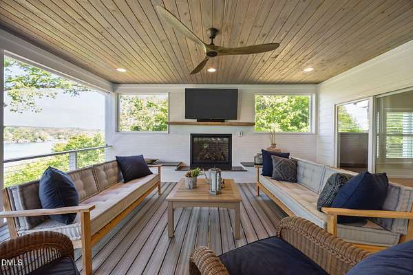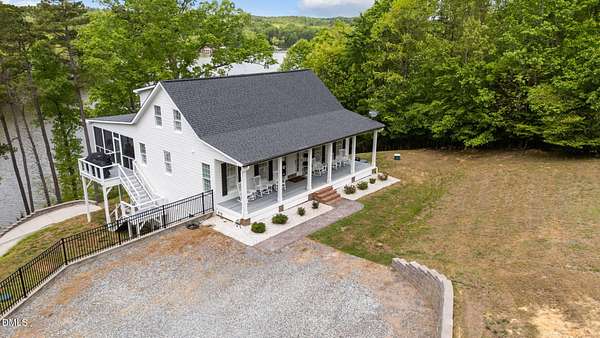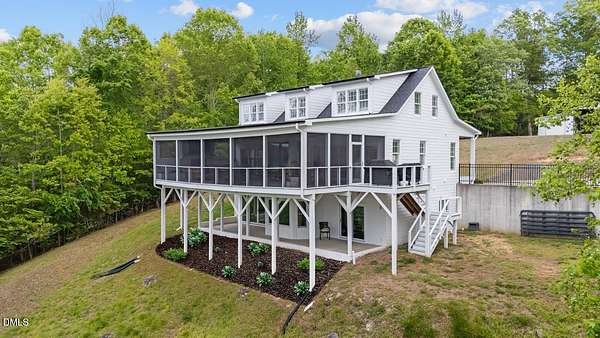 Fully renovated Lakefront Retreat on Hyco Lake/Luxury Upgrades Throughout. Experience turnkey lake living in this extensive renovated home where no detail was overlooked. Updated from 2022 to present, this property blends high-end finishes with thoughtful design, offering both comfort and functionality inside and out. The exterior has been completely refreshed with new Hardie Plank siding, new roof (2022), expanded parking and a redesigned retaining wall. Inside, natural light pours through new Andersen windows and sliding glass doors, highlighting the open living spaces and a new indoor gas FP. The home features 3.5 fully renovated bathrooms, a Rinnai tankless water heater, and a whole home softening system with dedicated closet. Outdoor living done Right!! A standout feature is the full-width trex deck, designed for your rear-round comfort. Trex decking and cable railings, Tongue and groove celing, Outdoor gas FP and fully screened upper level and underside for bug-free comfort. A separating grilling porch makes entertaining effortless. Walk-out basement with Exceptional Flexibility! The fully finished basement offers a second living space ideal for guests or entertaining, featuring: Custom shiplap finishes, dedicated exercise room + 2 flex rooms, Bonus room with dry bar, Full bath with double vanities w/separate half bath and dedicated new HVAC system. 24x20 powered shop with garage door and RV carport. This is a true no-compromise renovation -perfect as a full-time residence or luxury lake retreat. Enjoy seamless indoor-outdoor living in one of NC 's most sought-after lake communities.