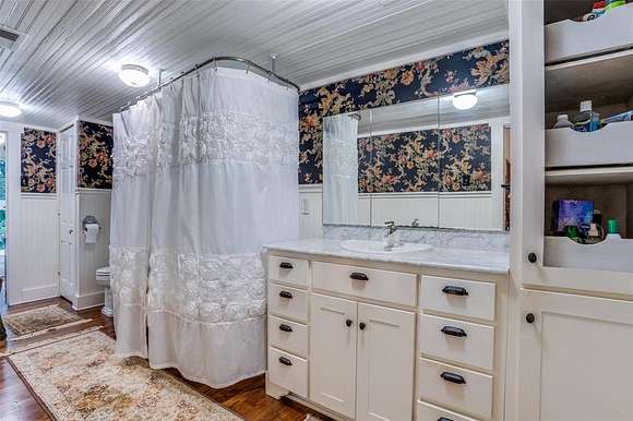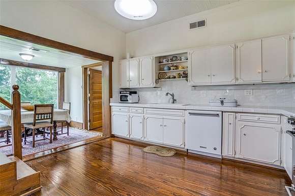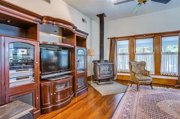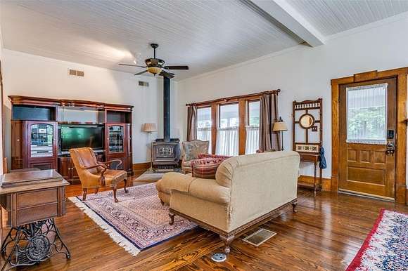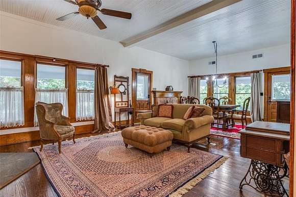 Nestled atop this natural peak of Collin County, this gated acreage exudes multiple opportunities. There are several ideal building sites to realize your dreams of country living at its finest. Enjoy the natural beauty that offers a serene duck pond, chicken coop and garden area cater to the hobbyist farmer within. Additional features are 3 two car carport, insulated storage building with electricity and loft space at each end. TV and broad band antenna. This all electric home could be an office or guest house. GFCI breaker box wired for generator backup and offers surge protectors. A Franklin wood-burning stove in the LA. Upstairs, a spacious large room offers flexibility for customization into two separate rooms with a half bath nearby. An historic mule barn with 2 stalls, decked hay loft, skylights, tack room, locked storage rm. 1 well. Envision a drive created to the shaded pond about 30 feet deep at the north end of the property. Pasture with frost-proof water access adds more.