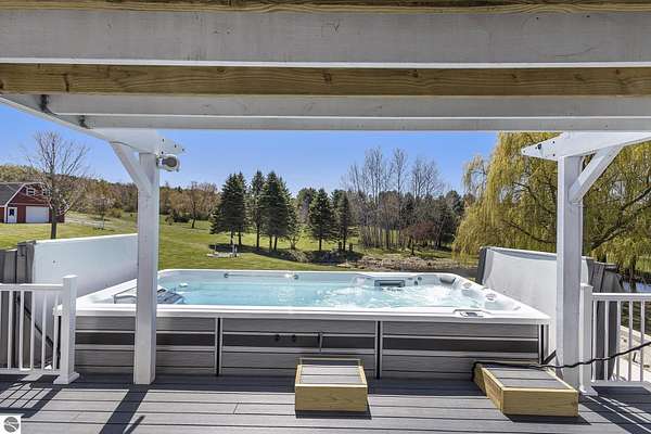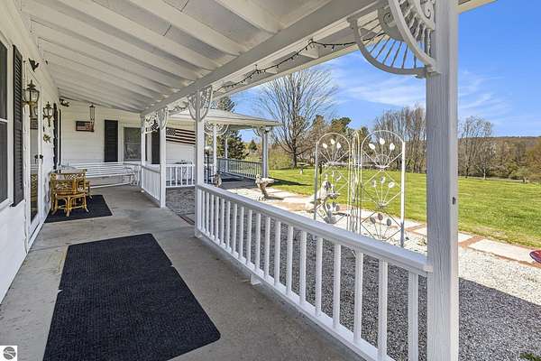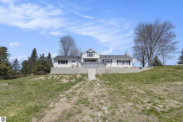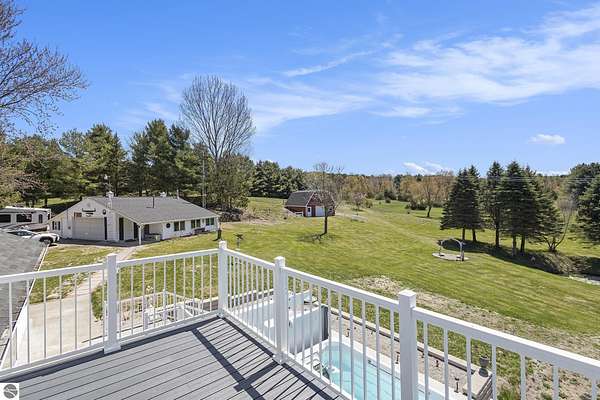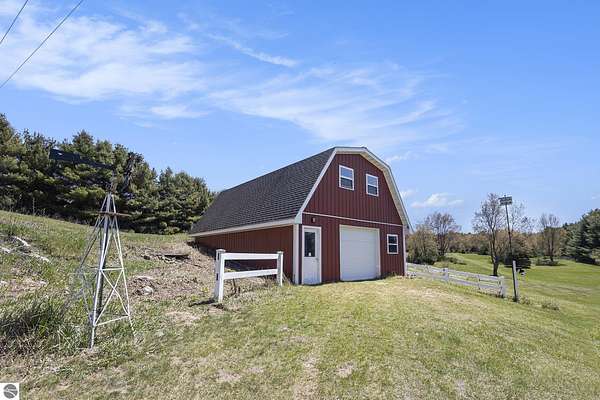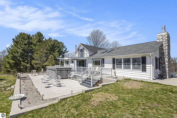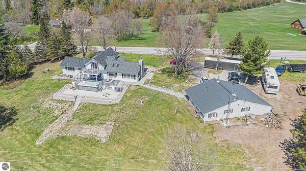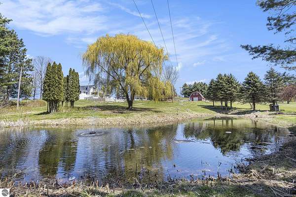 NOW offering Land Contract and a New lower price -Seller motivated -This is an extraordinary home and property with views that are breathtaking and serene. That can only be fully appreciated when you visit this unique residence nestled on 25 picturesque acres of rolling, landscaped woods, white pine groves, and open land suitable for farming, gardening with a shooting range and hunting blinds. The home boasts almost 2,300 square feet of space, which has undergone a complete remodel over the past few years. The kitchen features stunning cabinets and quartz countertops. Bathrooms remodeled. Floors are predominantly hardwood. The living room is equipped with a newer gas fireplace, while the family room houses a high-efficiency wood-burning stove. A charming 12 x 40-foot trex deck extends over the property, 2nd floor balcony, beautiful brick-paver retaining walls and a swim/spa pool. The patio is 21 feet by 45 feet and is reinforced with a 6-inch thick concrete slab. Whole house generator. Master bedroom enjoys an en-suite with walk-in bathtub. Garage is approximately 1,000 sf and is equipped with electricity and natural gas heating. The pole barn boasts a concrete floor and an loft with a private entry door, offering endless possibilities for its use. The property is home to a variety of plants, including raspberry bushes, wild asparagus, mushrooms, and numerous apple trees. With its 25 acres, the property has unlimited potential and possibilities for land splits. It could serve as an ideal family compound or potentially accommodate camping sites or facilitating the development of multiple parcels for building. A picturesque pond is situated on the property, serviced by a second well. The property's features are truly remarkable, and I cannot adequately describe them all. The best way to experience them firsthand is to visit. Please allocate ample time to explore the property thoroughly. An additional attractive feature at the property's end is Grace Road Beach.